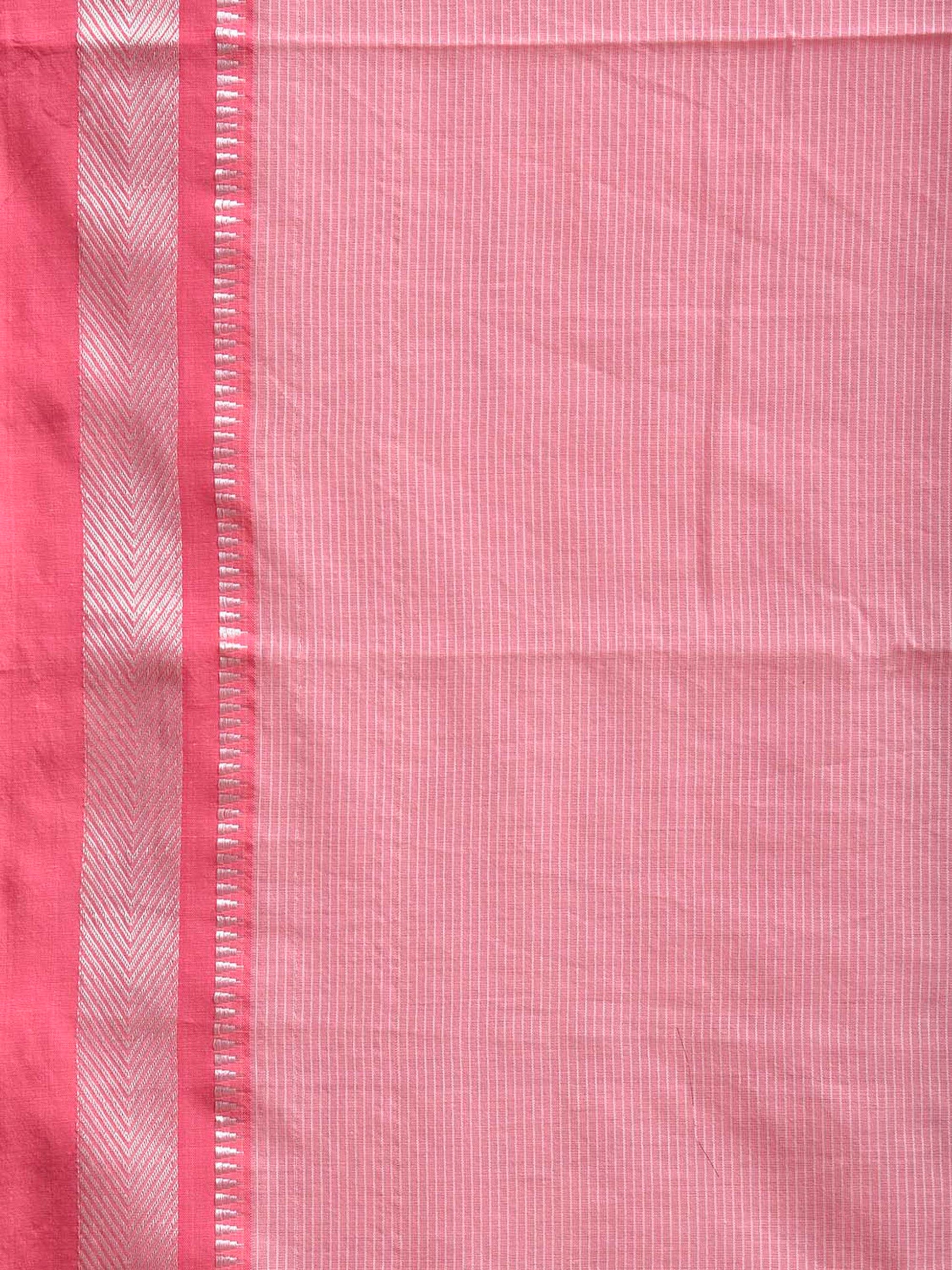 Baby Pink and Pink Bamboo Cotton Saree with Strips Design No Blouse bc1098