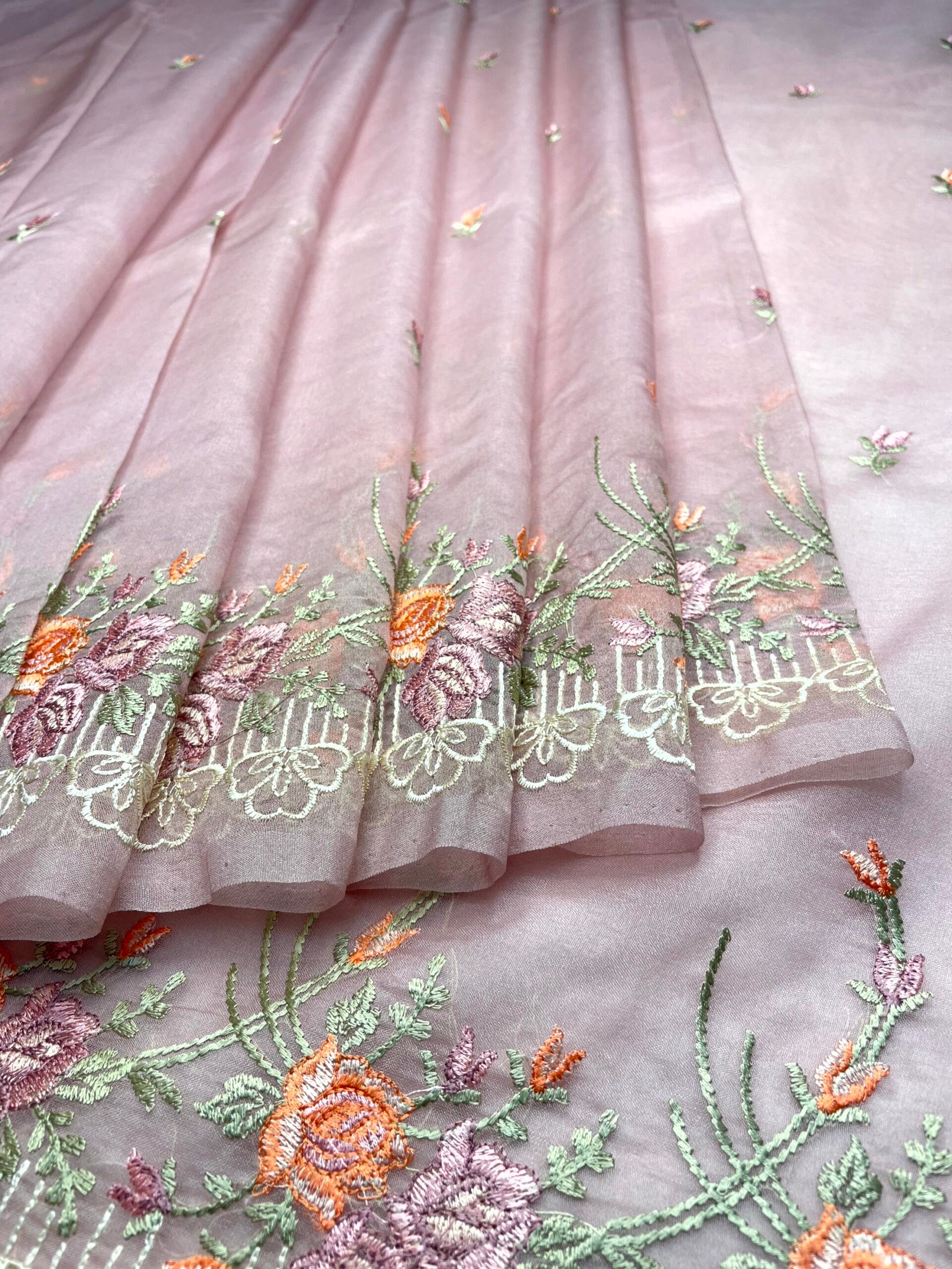 Baby Pink Organza Saree Embroidery with Butta and Border Design