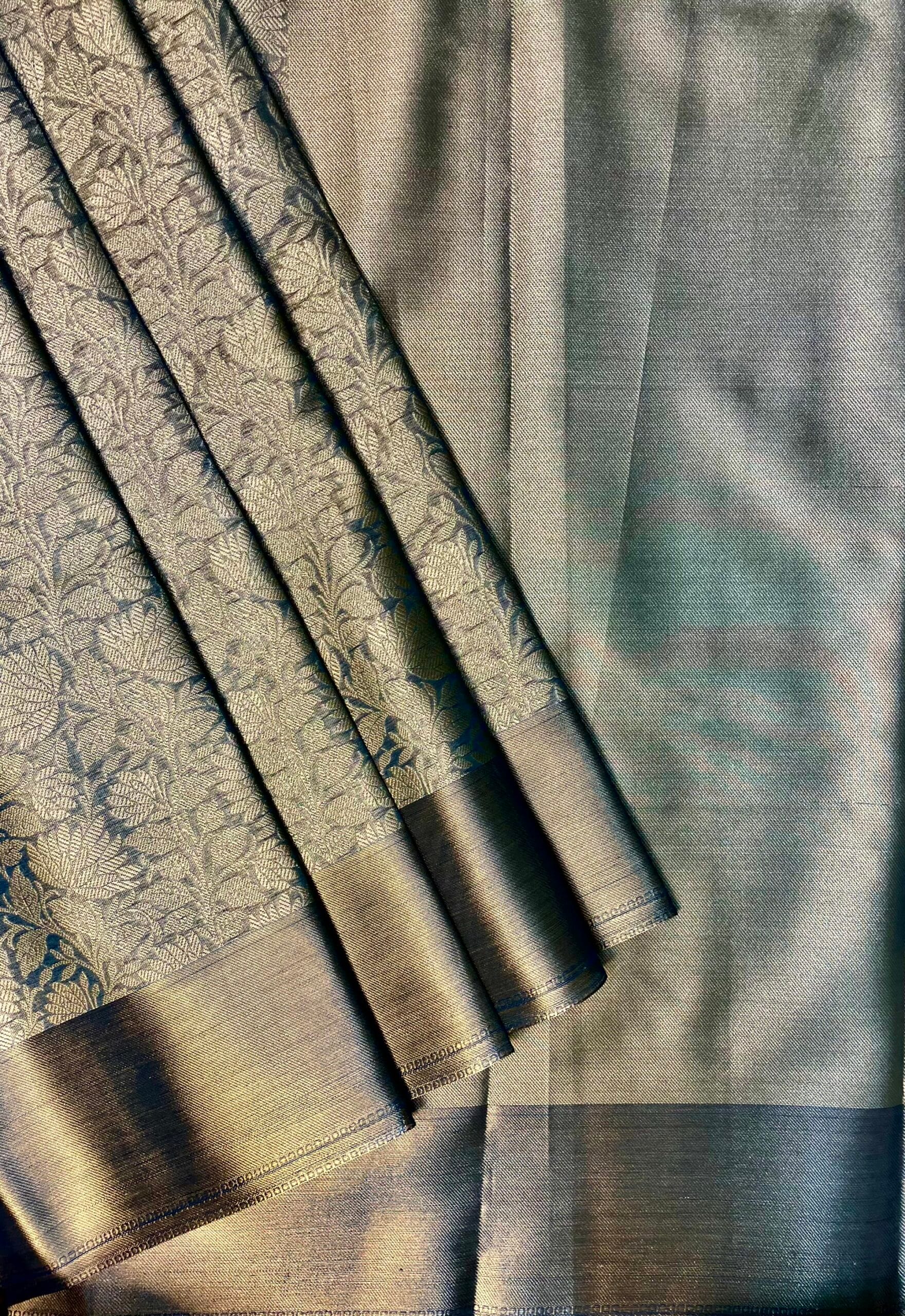 Banaras Tissue Saree with Intricate Kanchivaram Brocade Body and Border Design