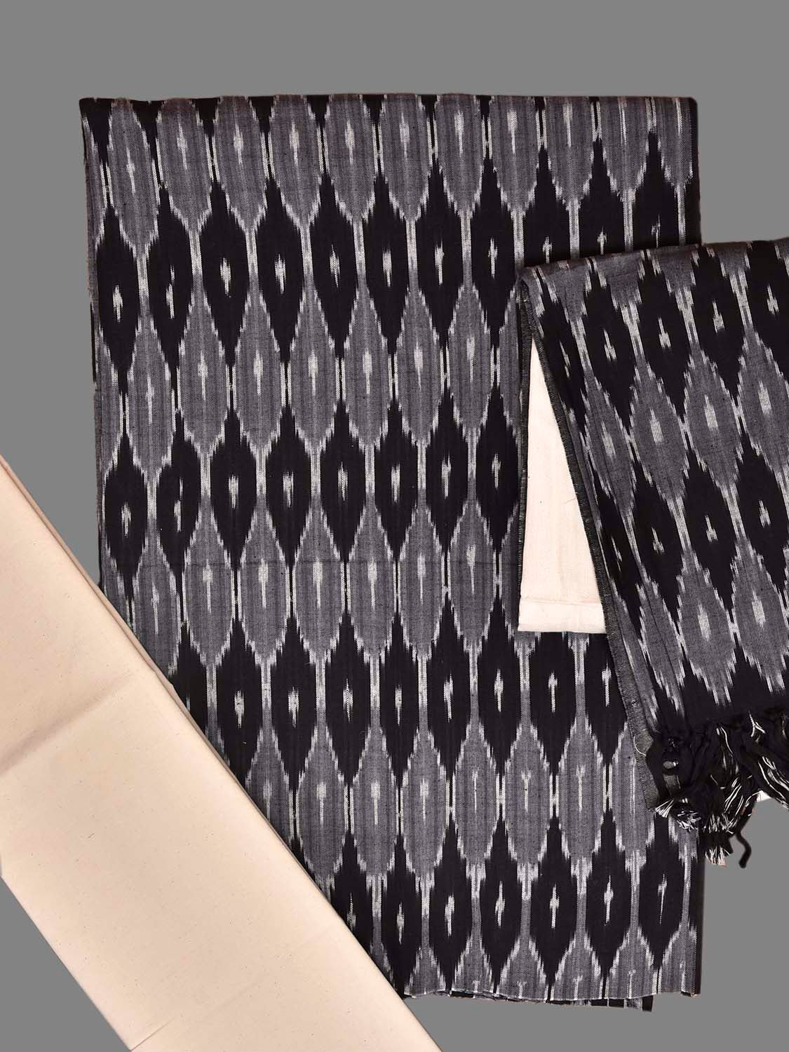 Black and White Pochampally Ikat Cotton Handloom Dress Material with Grill Design Top Plain Dupatta and Bottom dm0087