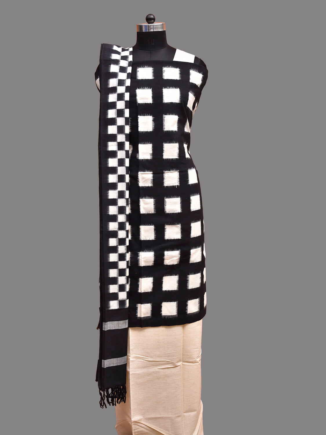 Black and White Pochampally Ikat Cotton Handloom Dress Material with Top Bottom and Dupatta 2.5mt Length dm0090