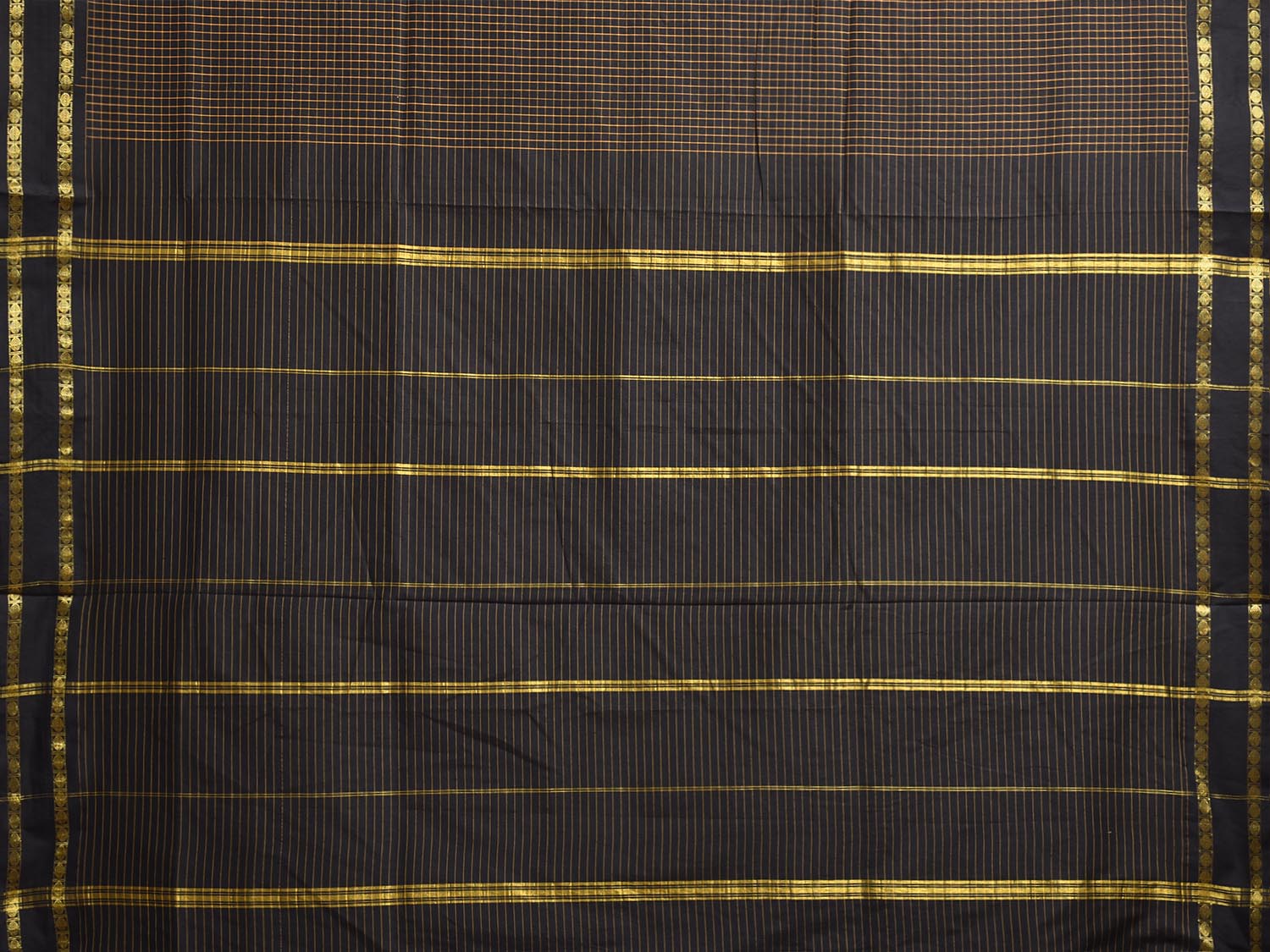 Black Gadwal Cotton Viscose Saree with Checks and Doby Border Design. Gadwal Sarees are known for their traditional design of border and pallu made of silk and body being either cotton or silk. They are known as Sico sarees for border and pallu being silk and body being cotton. We advice dry clean for fabric care.