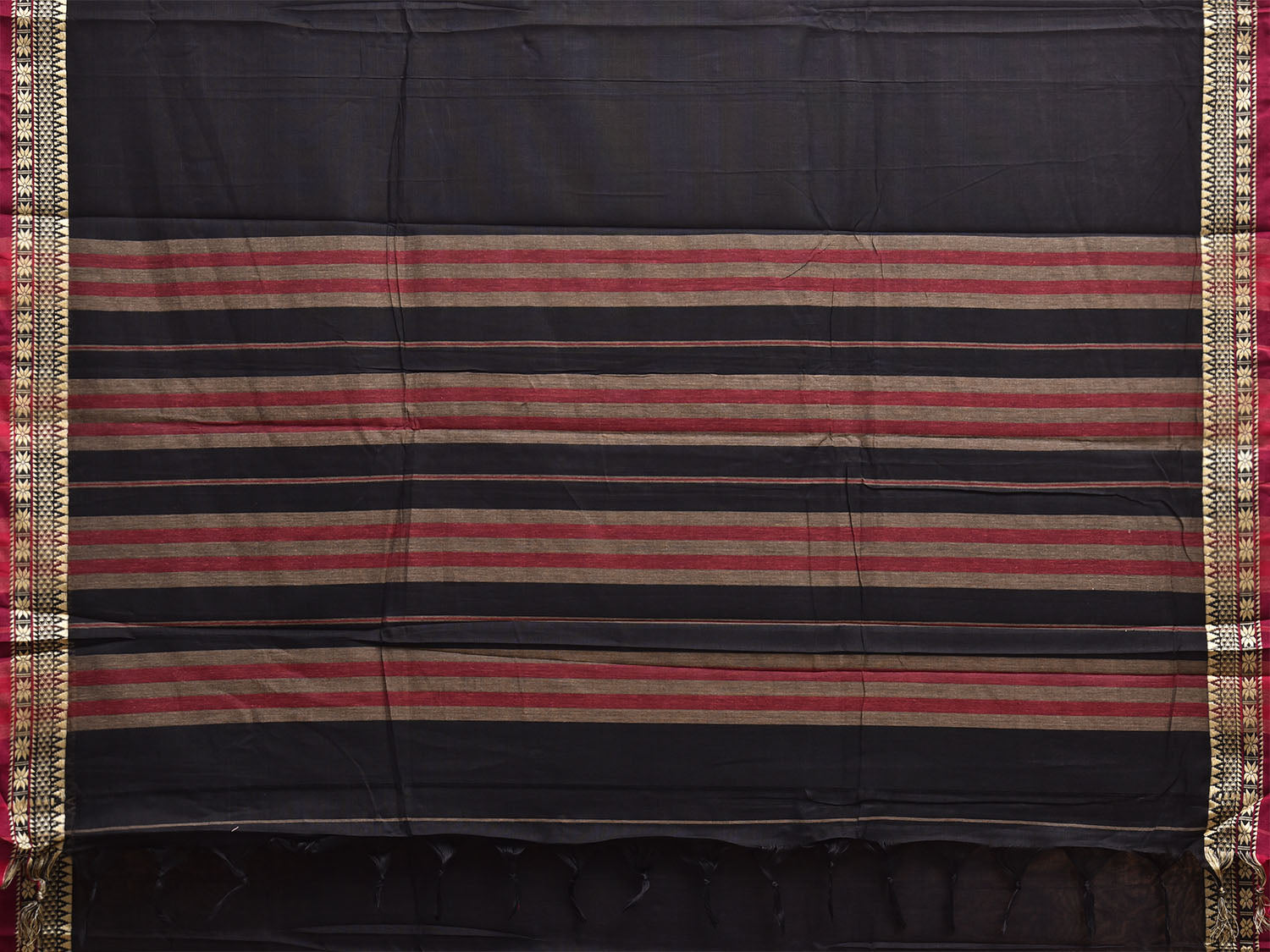 Black Narayanpet Cotton Plain Saree with Strips Pallu Design No Blouse