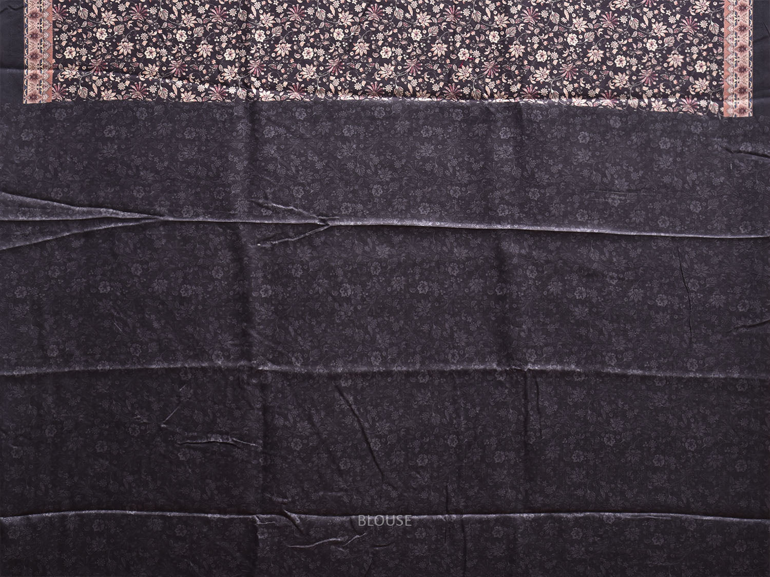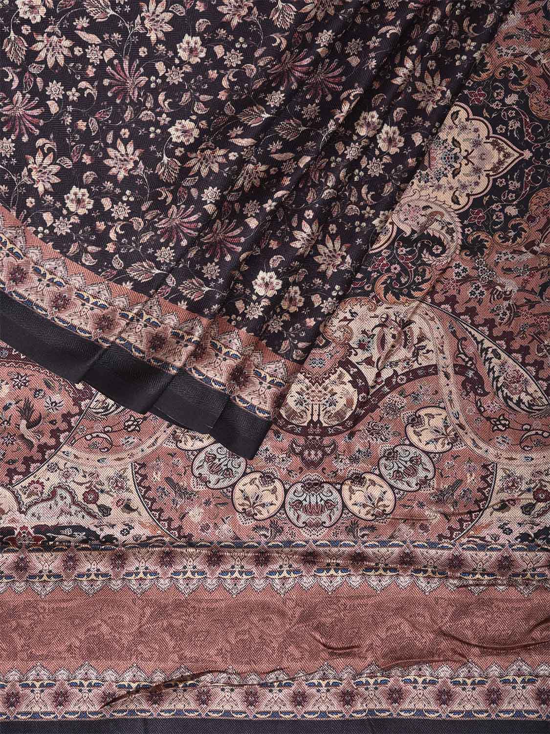 Black Pashmina Print Viscose Saree with Floral Body and Pallu Design o0726