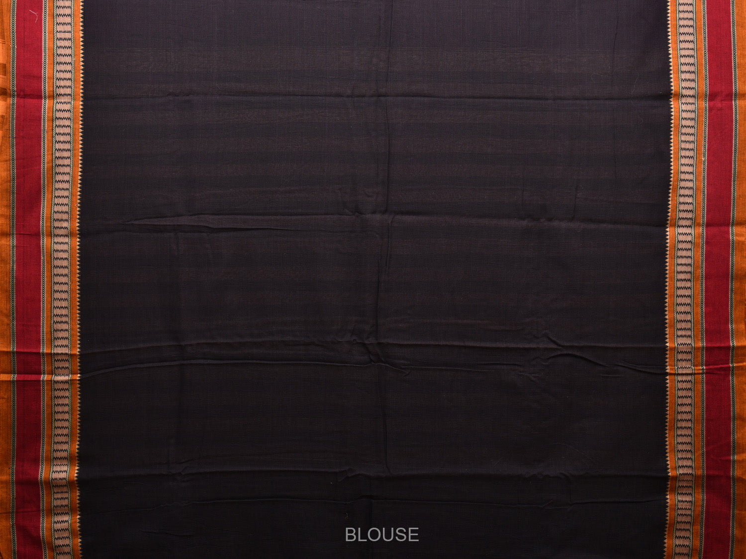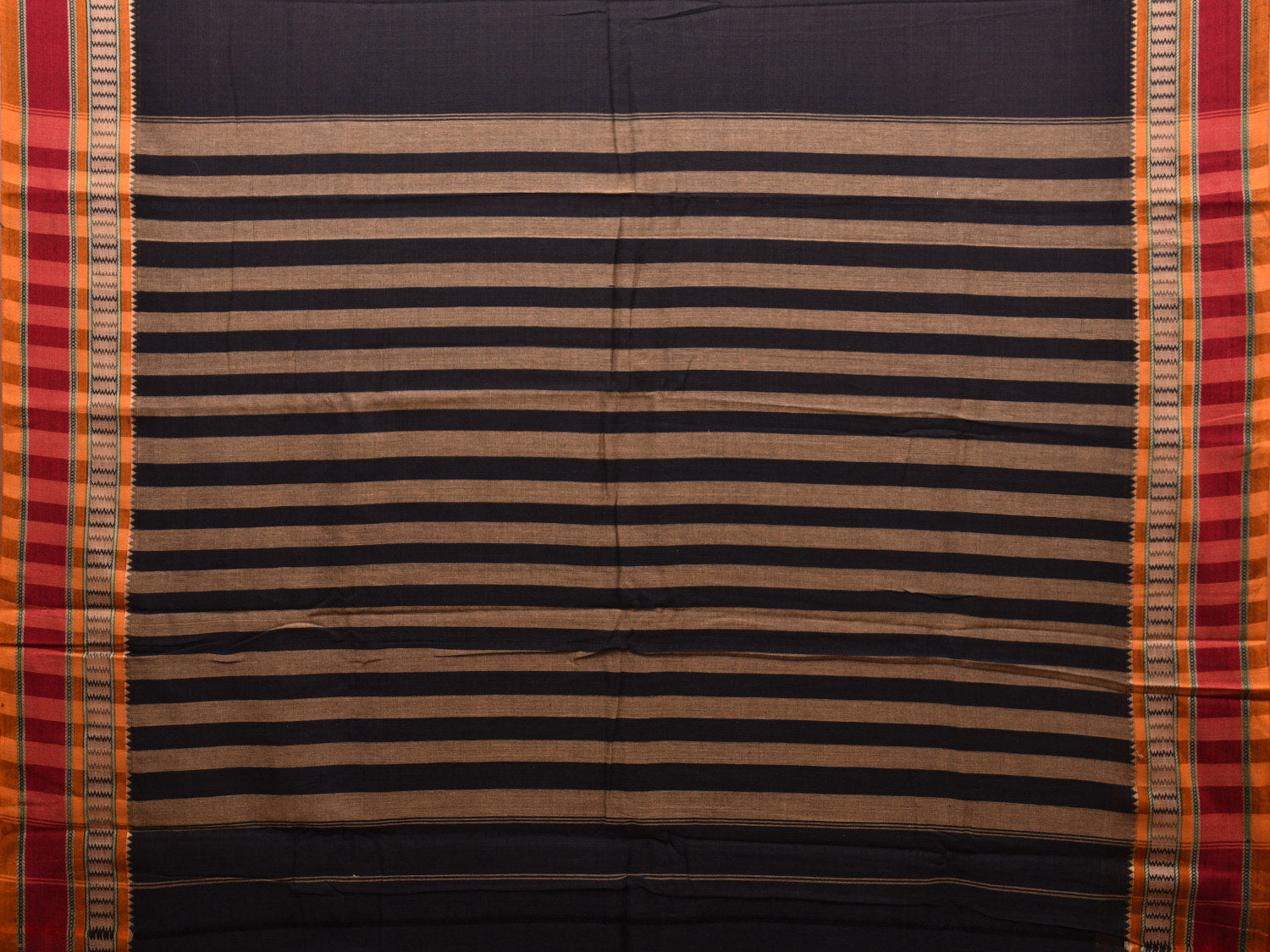 Black Poly Cotton Plain Saree with Strips Pallu and Border Design o0486