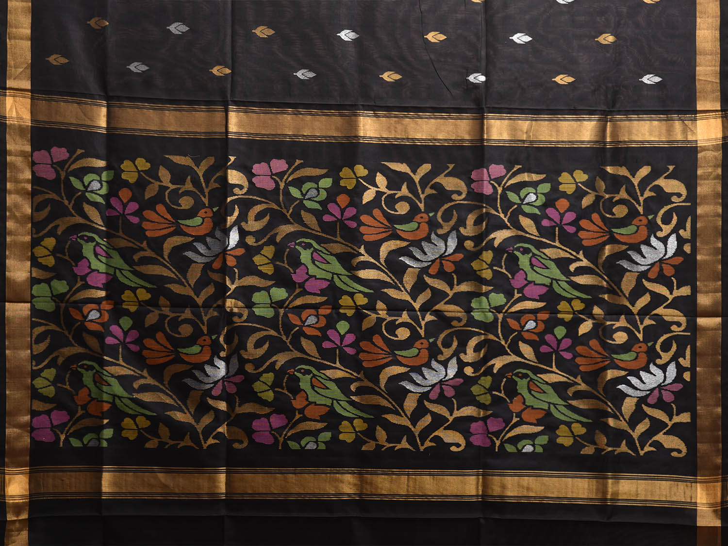 Black Uppada Silk Handloom Saree with Birds and Floral Pallu Design u2386
