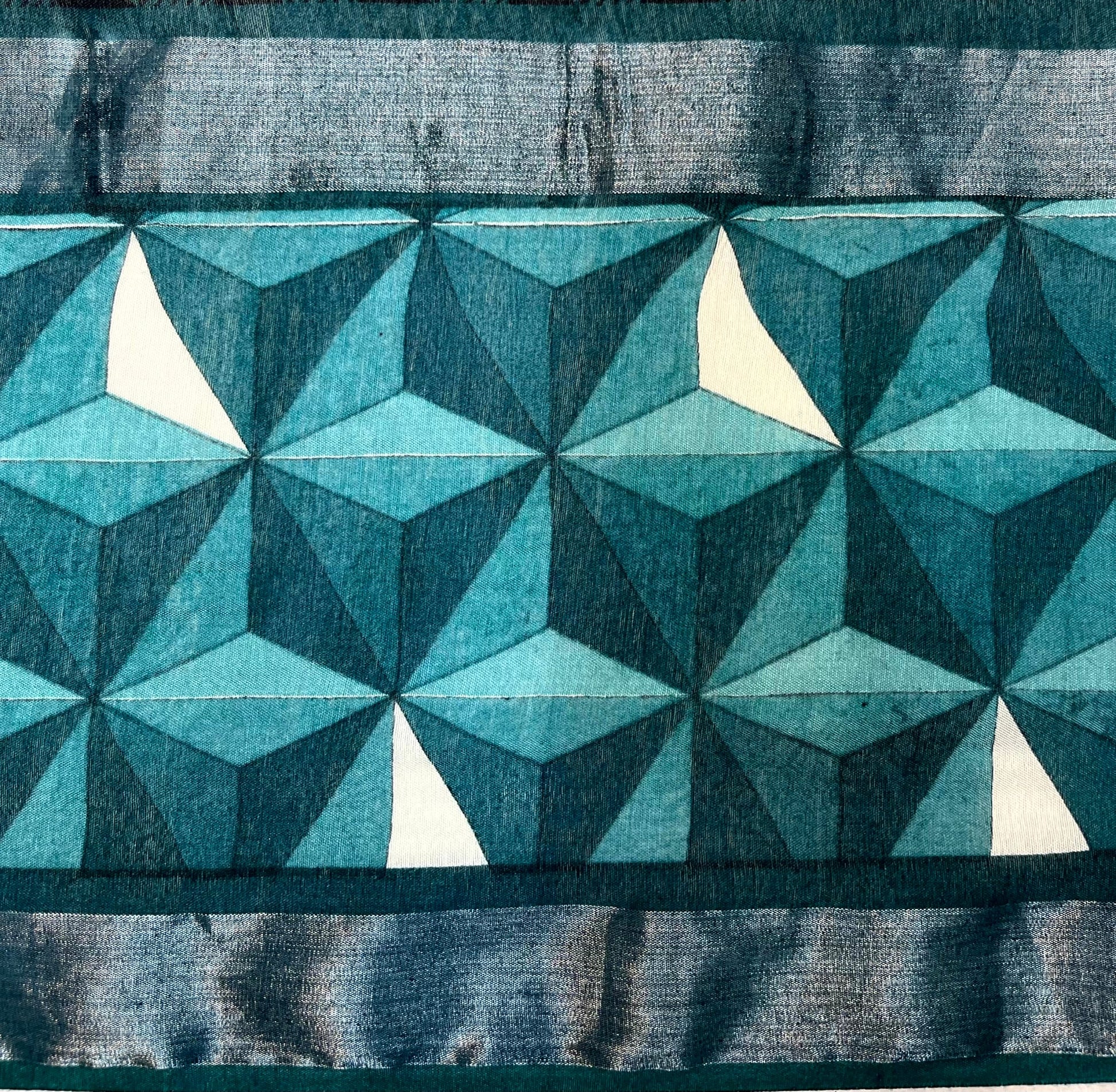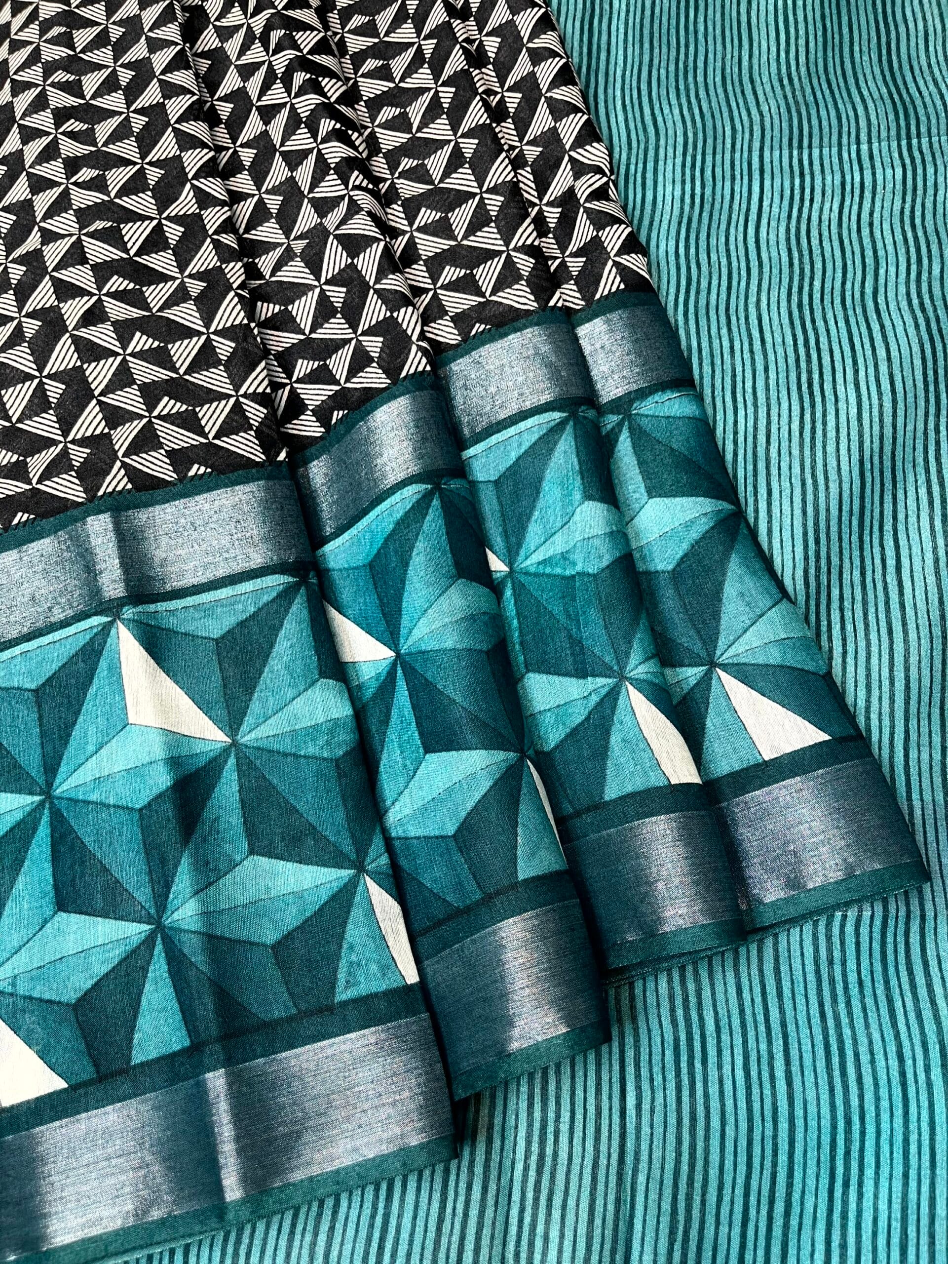 Black Viscose Silk Digital Print Zari Border with Body and Pallu Geometrical Design