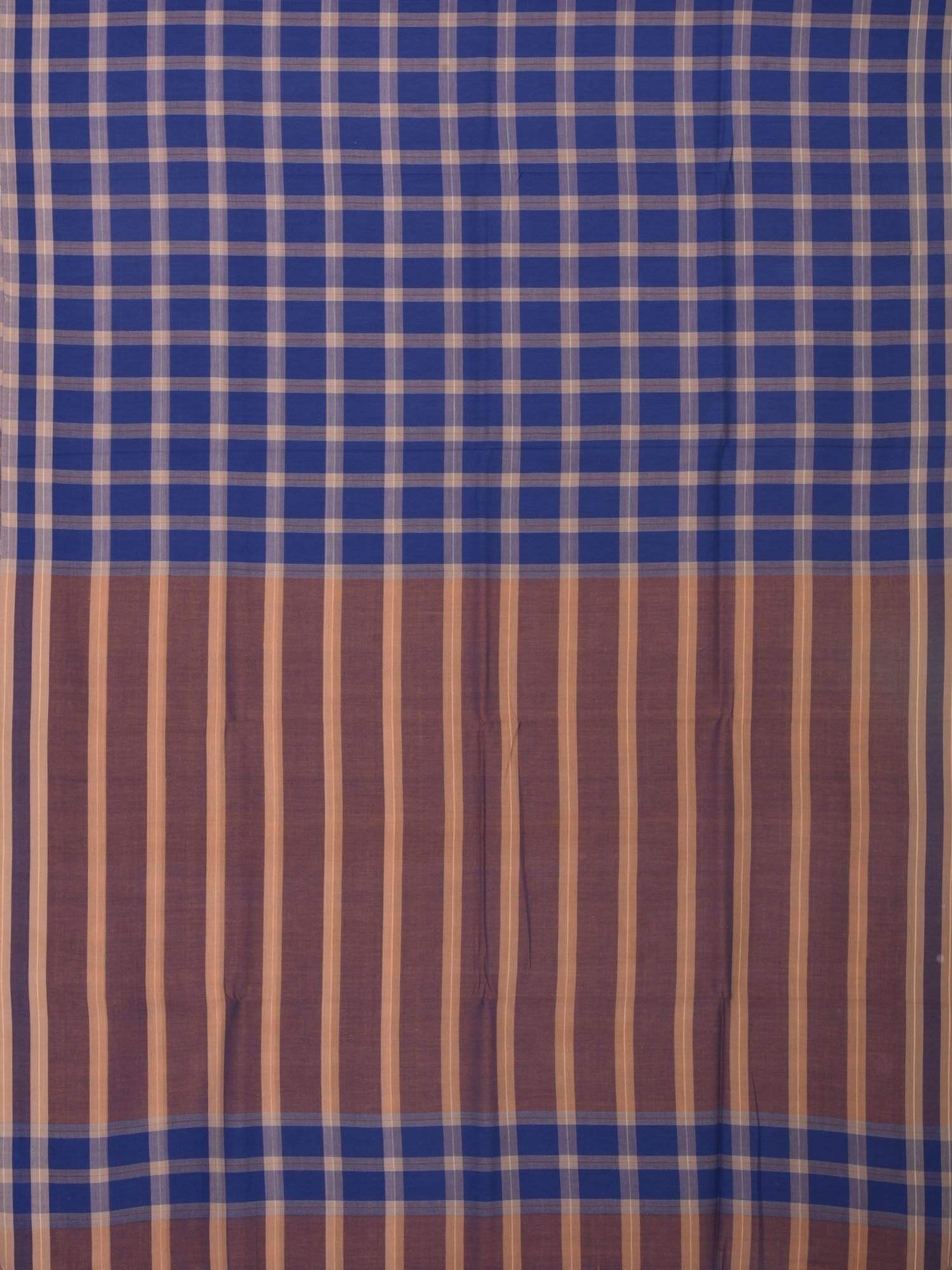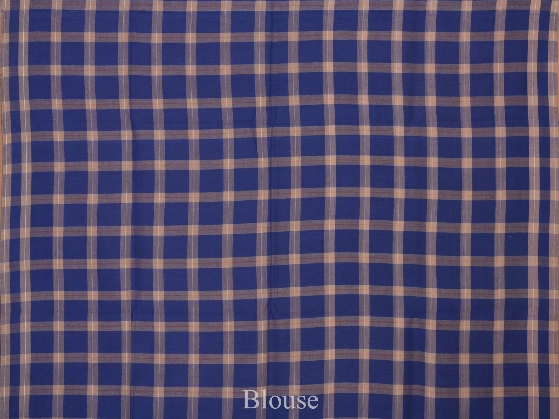 Blue and Cream Organic Cotton Handloom Saree with Checks Design o0155