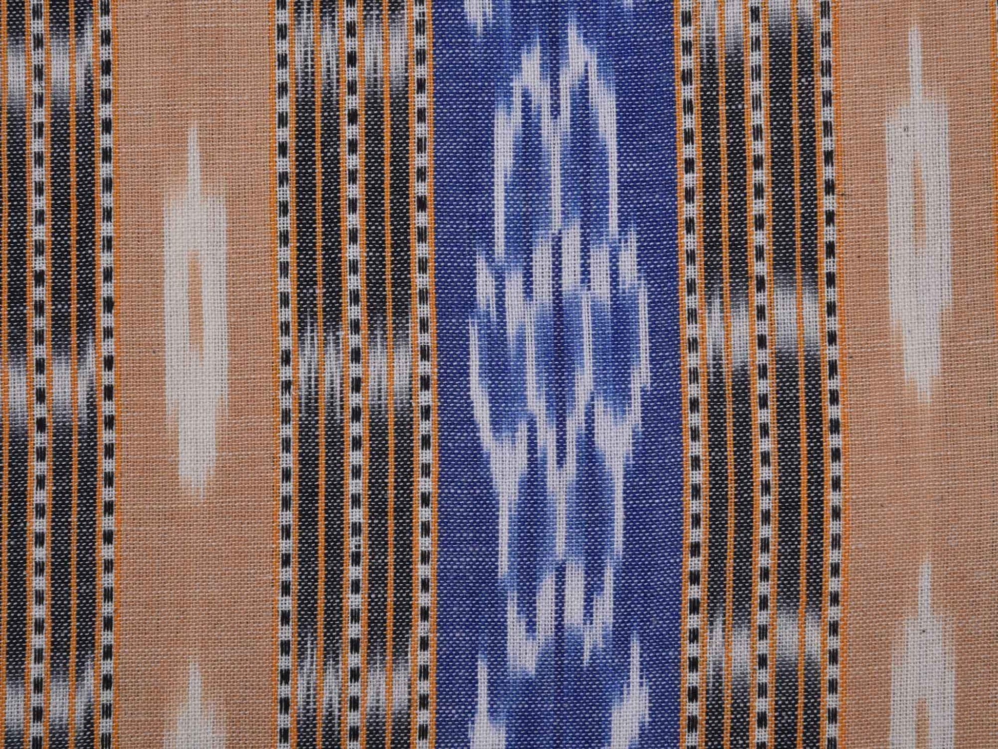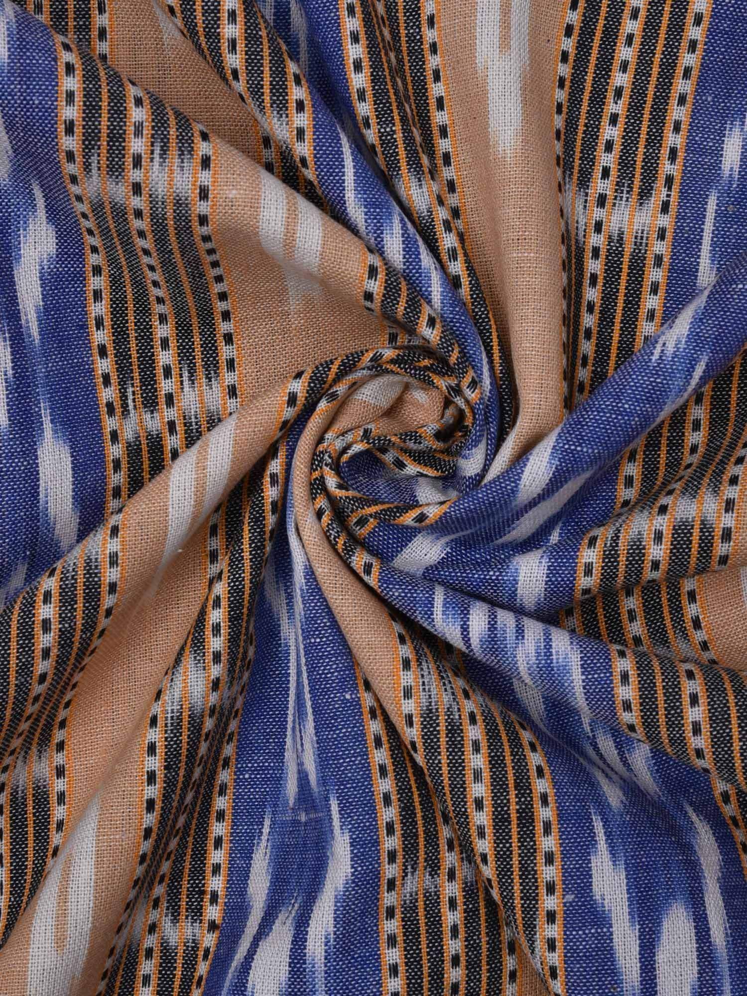 Blue And Cream Pochampally Single Ikat Cotton Handloom 2.5mts Fabric With Strips Design F0064
