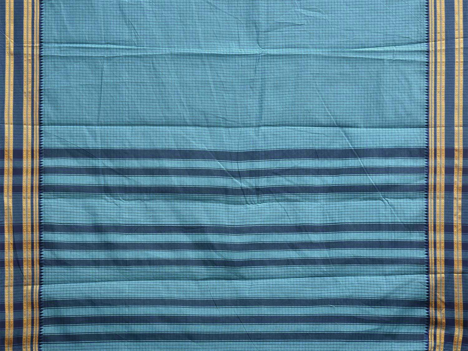 Blue and Dark Blue Bamboo Cotton Saree with Checks Design No Blouse. This is a blend of bamboo and cotton fibers, they have characteristics of both bamboo and cotton combined into one fabric. We Advise Gentle Handwash for Fabric Care. This saree has no blouse.