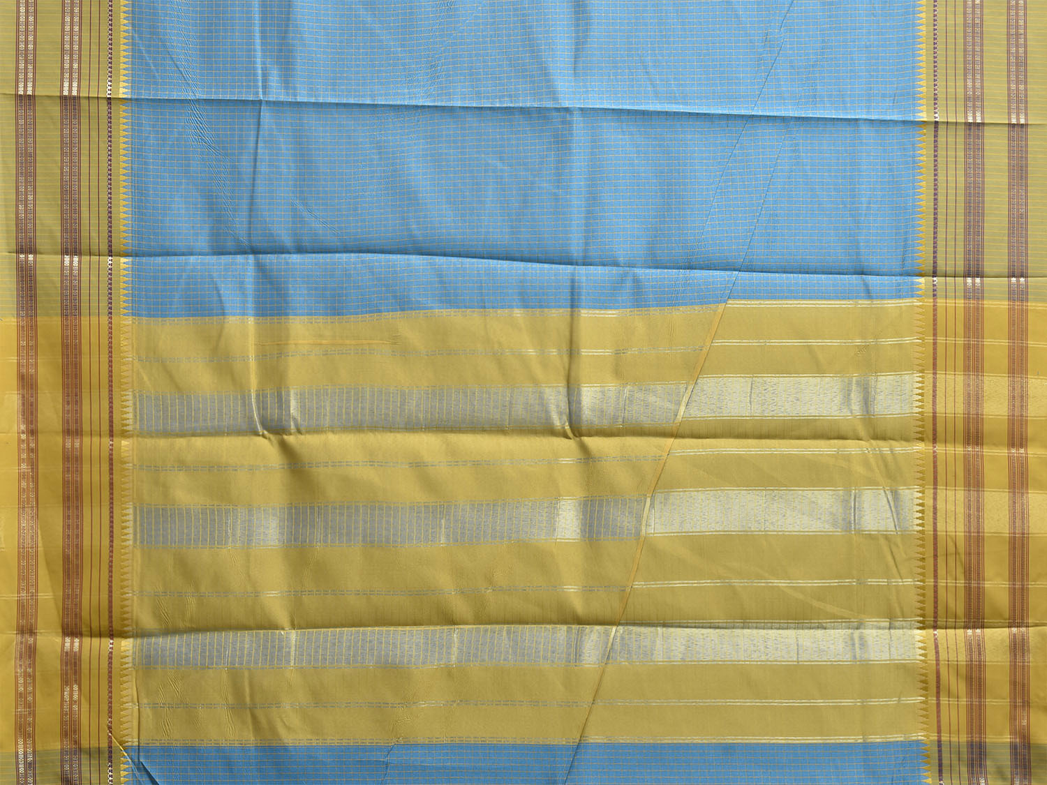 Blue and Green Bamboo Cotton Viscose Silk Saree with Checks Design No Blouse bc1036