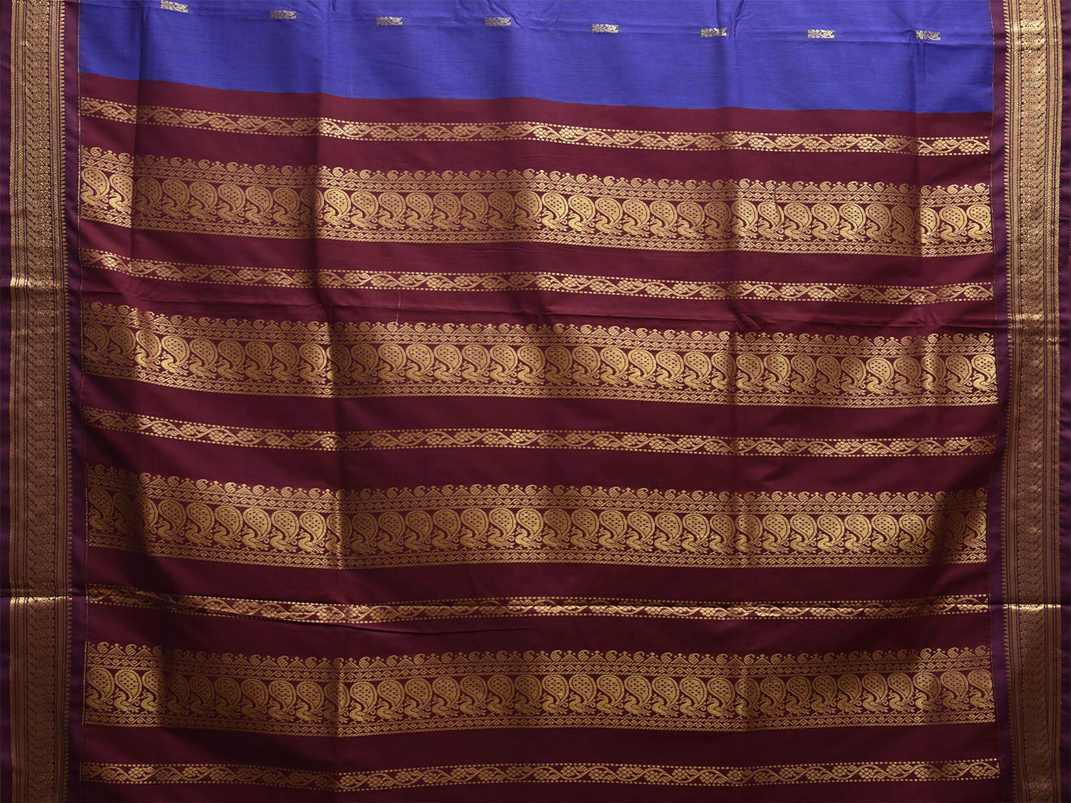 Blue and Maroon Gadwal Cotton Viscose Saree with Border and Pallu Design. Gadwal Sarees are known for their tradtional design of border and pallu made of silk and body being either cotton or silk. They are known as Sico sarees for border and pallu being silk and body being cotton. We advice dry clean for fabric care.