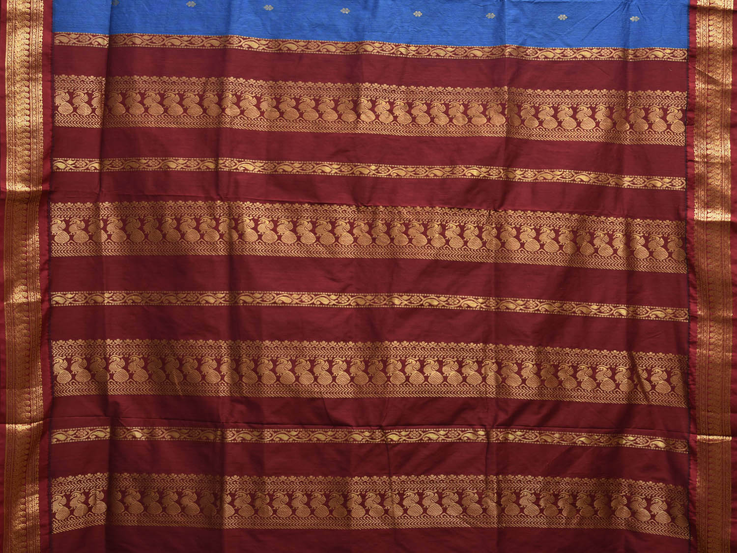 Blue and Maroon Gadwal Cotton Viscose Saree with Border and Pallu Design g0540