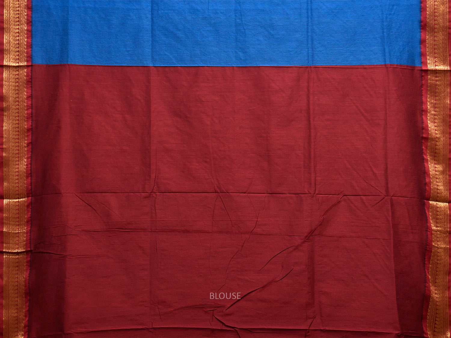 Blue and Maroon Gadwal Cotton Viscose Saree with Border and Pallu Design. Gadwal Sarees are known for their tradtional design of border and pallu made of silk and body being either cotton or silk. They are known as Sico sarees for border and pallu being silk and body being cotton. We advice dry clean for fabric care.