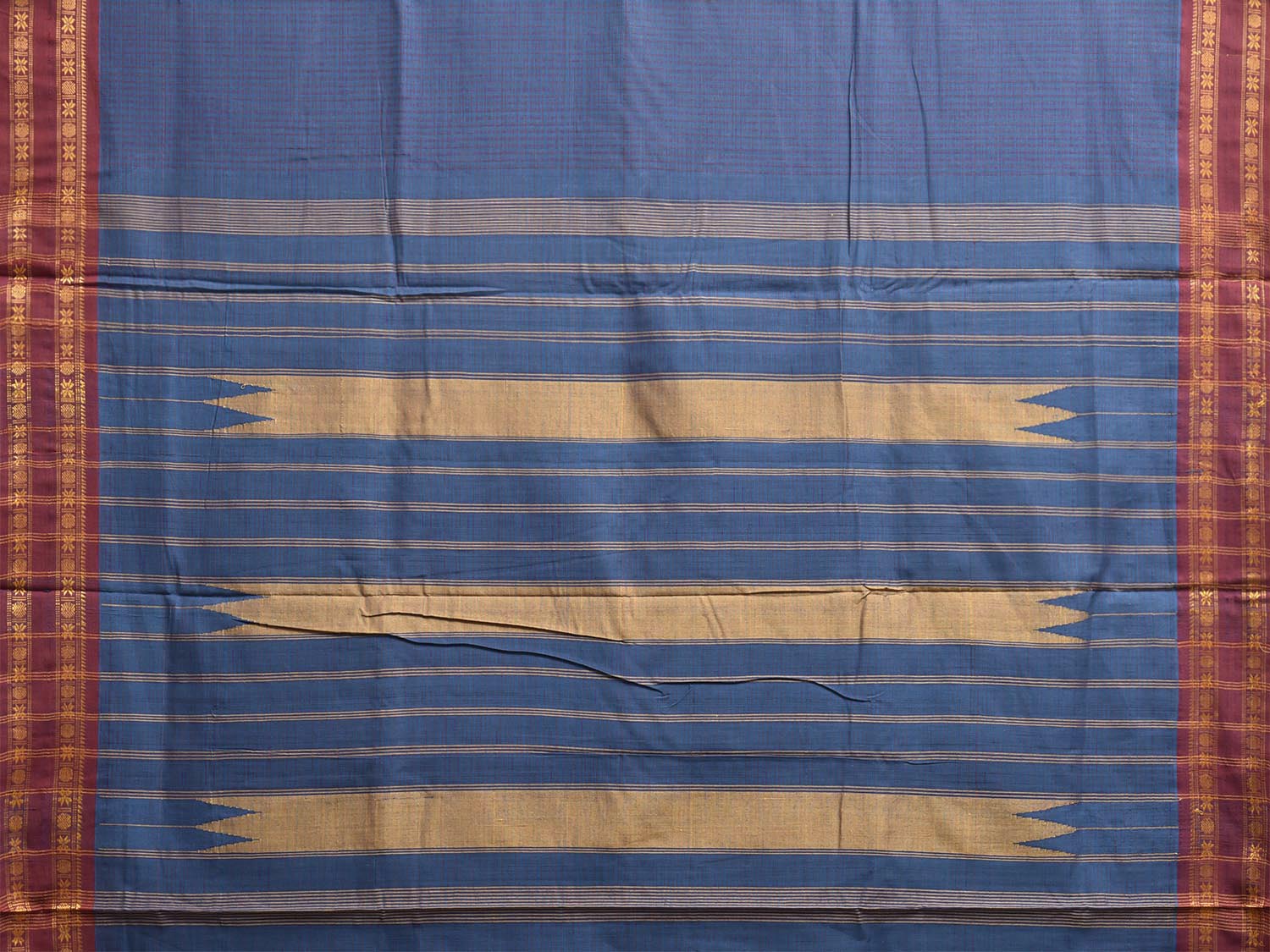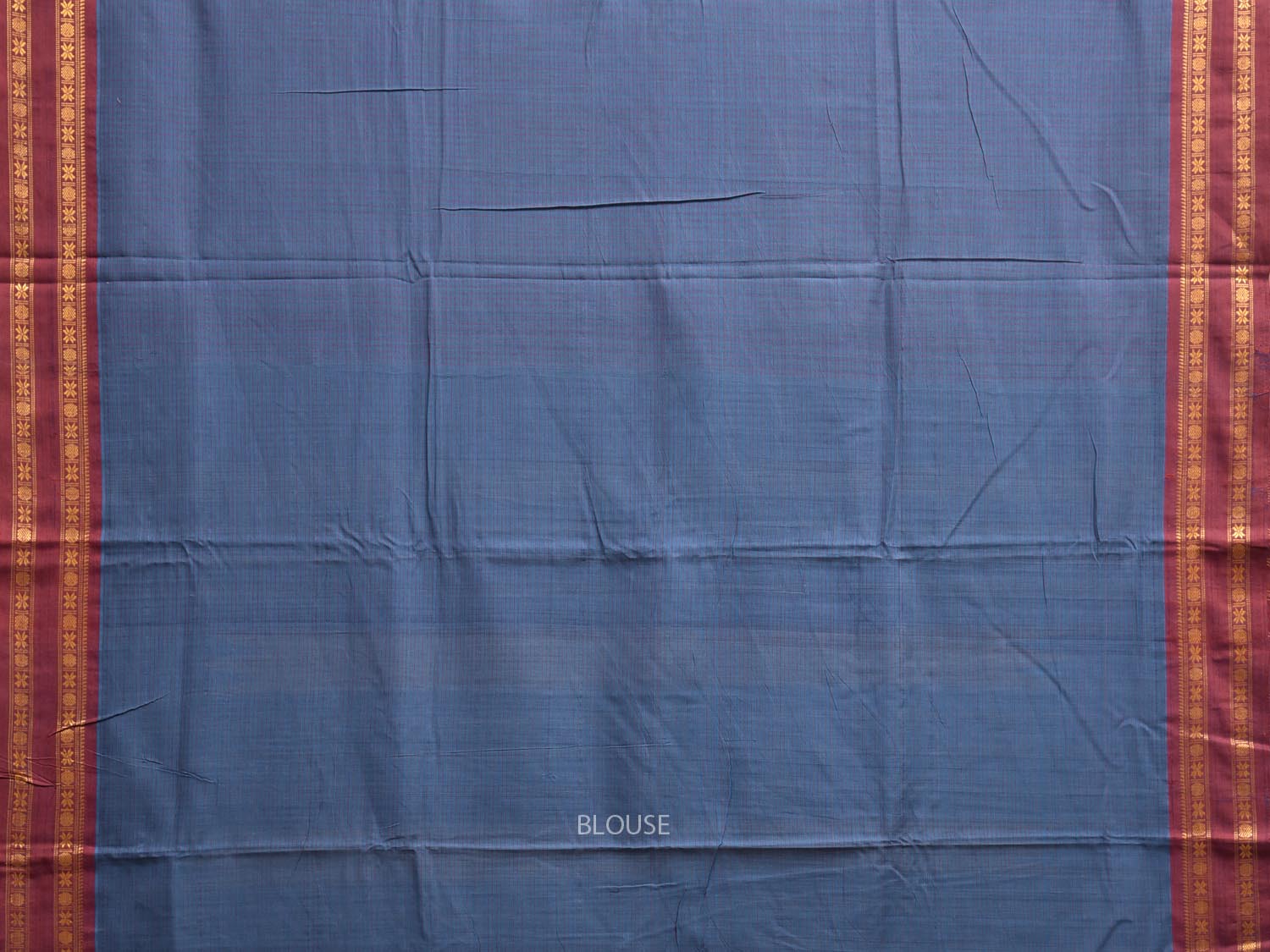 Blue and Maroon Narayanpet Cotton Handloom Saree with Checks Design np1387