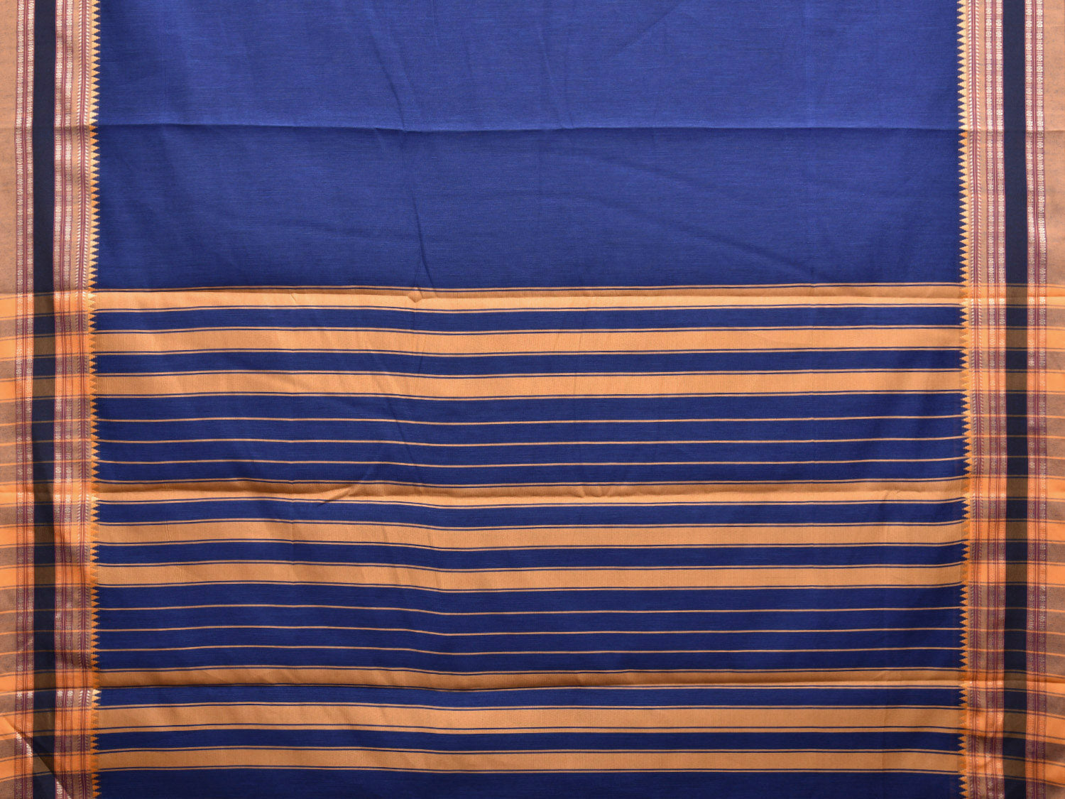 Blue and Mustard Bamboo Cotton Plain Saree with Strips Pallu Design No Blouse bc0462