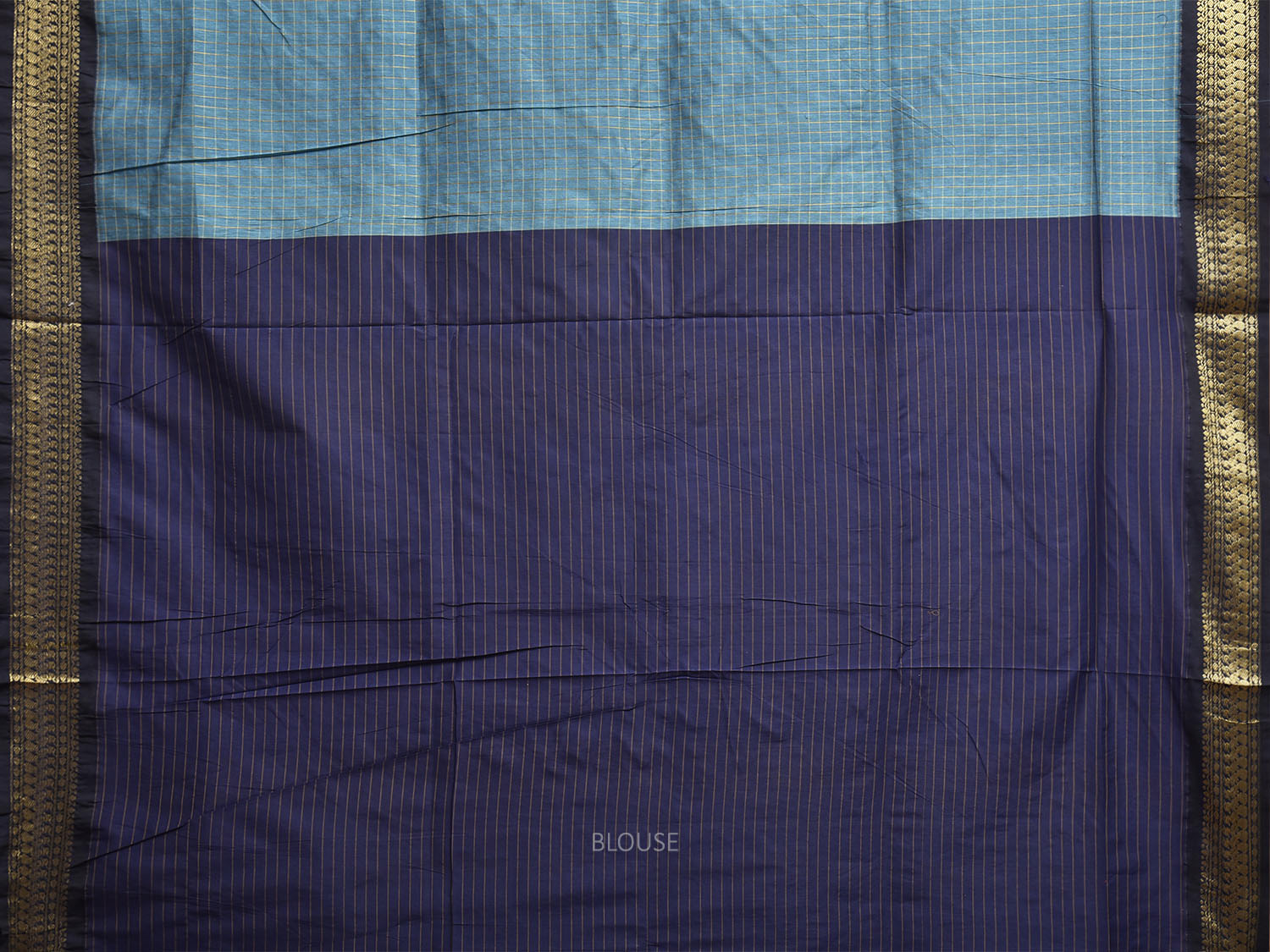 Blue and Navy Gadwal Cotton Viscose Saree with Checks and Pallu Design g0602