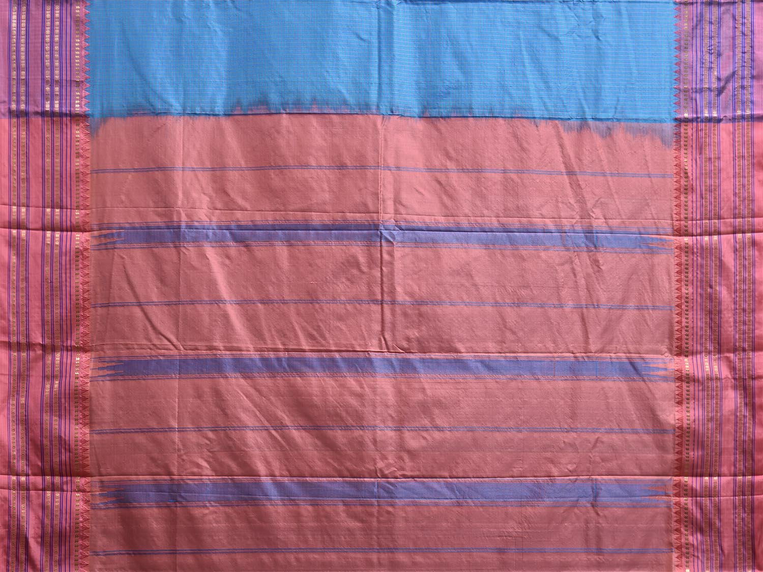 Blue and Peach Narayanpet Silk Saree with Checks Design np1449