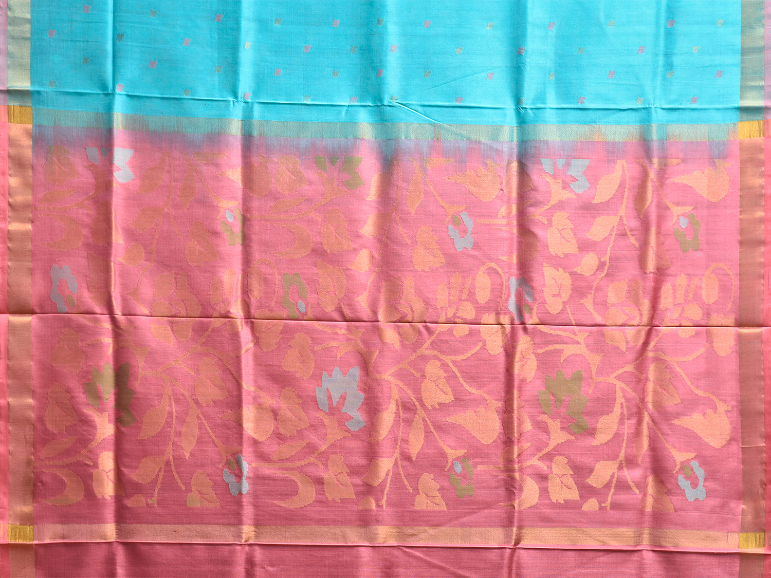 Blue and Peach Uppada Silk Handloom Saree with Floral Pallu Design u2422