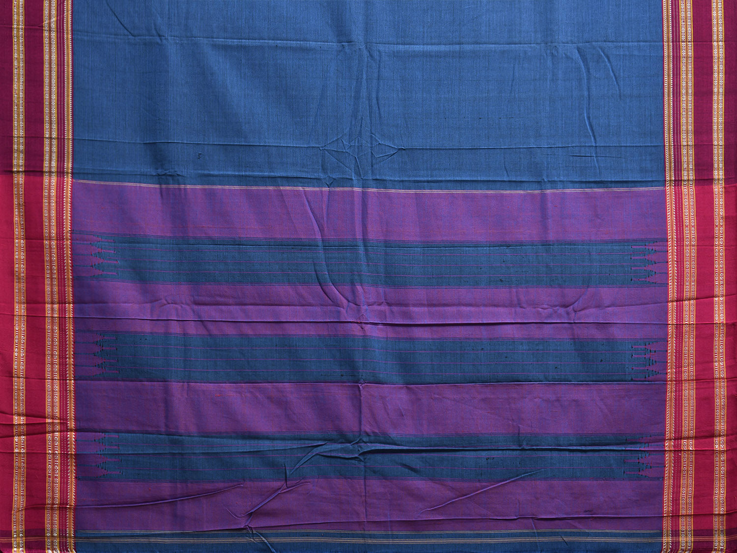 Blue and Pink ilkal Cotton Plain Saree with Strips Pallu Design No Blouse. For fabric care we advise gentle handwash separately.