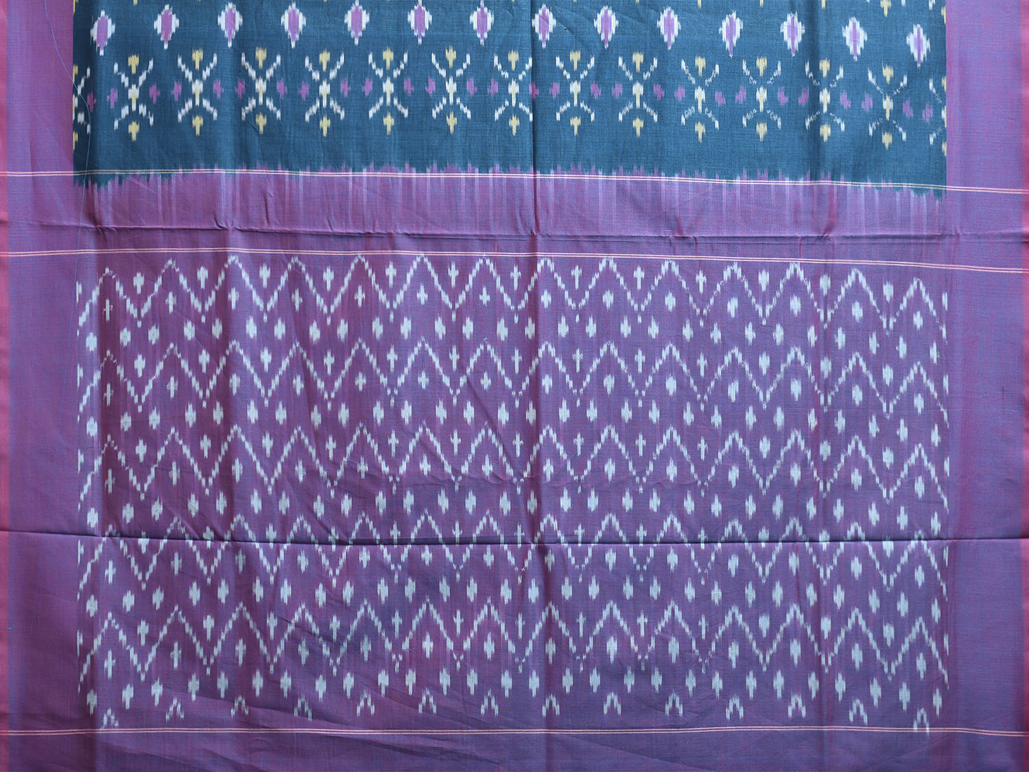 Blue and Purple Pochampally Ikat Cotton Handloom Saree with Buta and Zig-Zag Pallu Design No Blouse i0920
