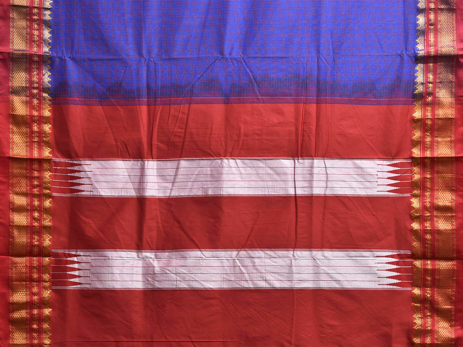 Blue and Red ilkal Viscose Silk Saree with Checks and Contrast Teni Tope Kammi Pallu Design. For fabric care we advise gentle handwash separately.