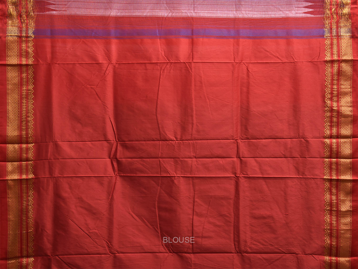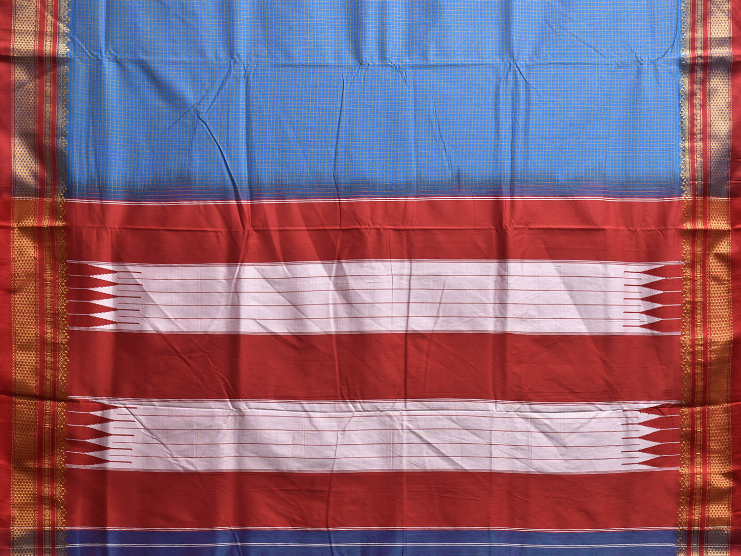Blue and Red ilkal Viscose Silk Saree with Checks and Contrast Teni Tope Kammi Pallu Design. For fabric care we advise gentle handwash separately.