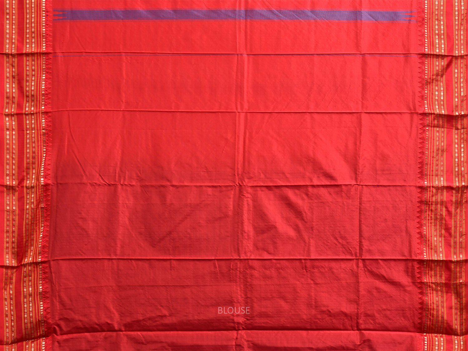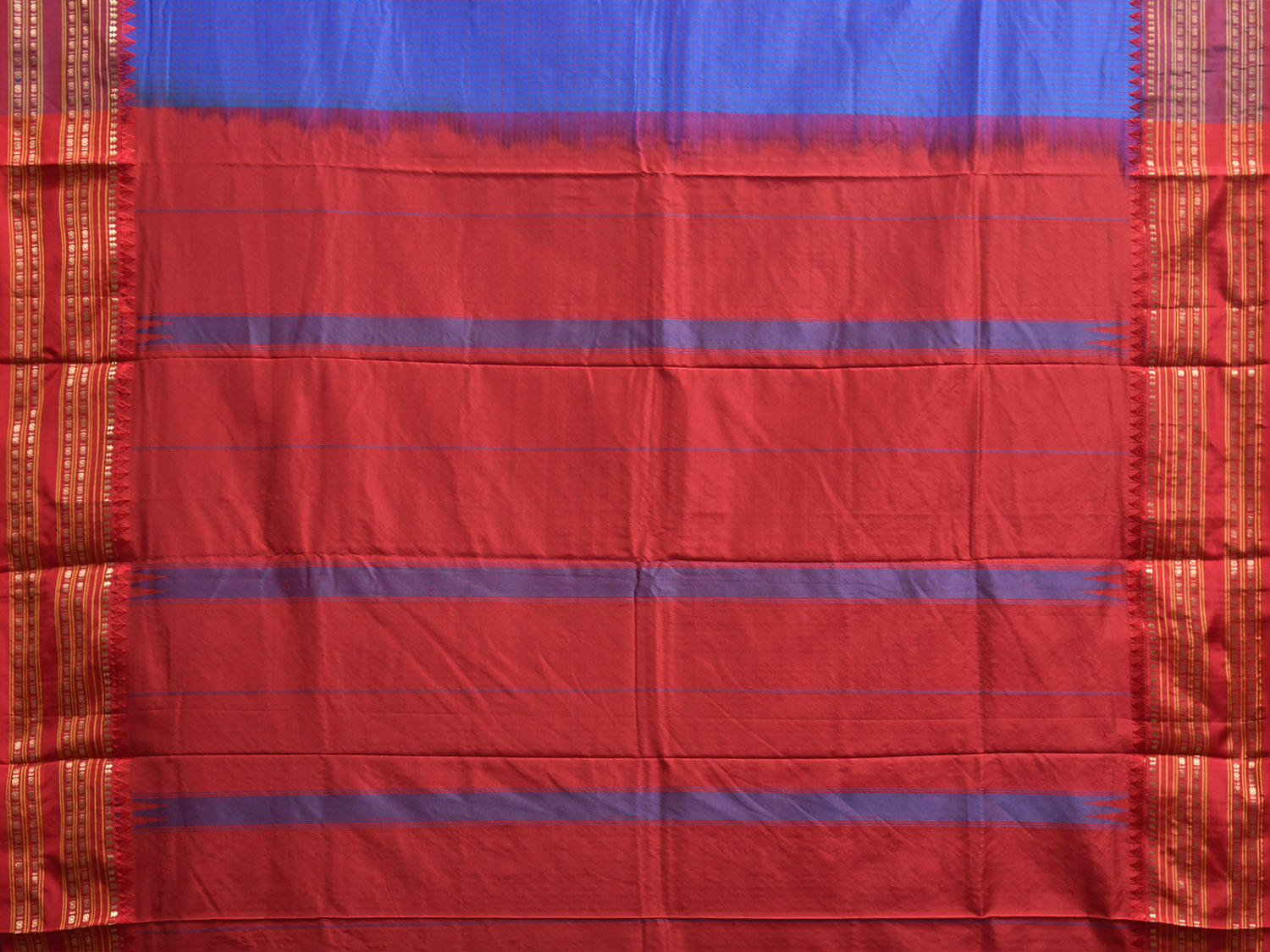 Blue and Red Narayanpet Silk Saree with Check Design np1393