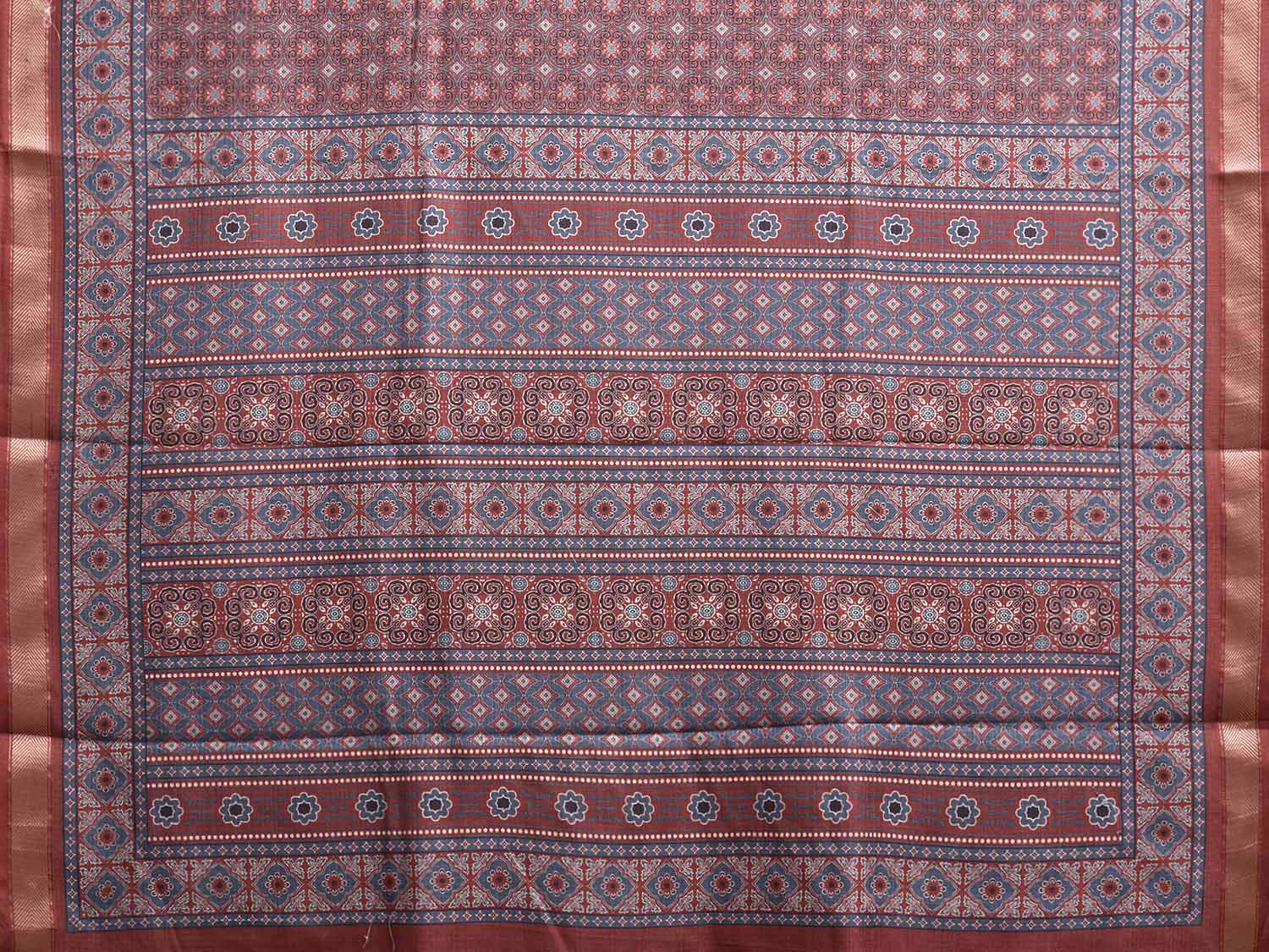 Blue and Rust Bamboo Cotton Saree with Digital Print Design. This is a blend of bamboo and cotton fibers, they have characteristics of both bamboo and cotton combined into one fabric. We Advise Gentle Handwash for Fabric Care.