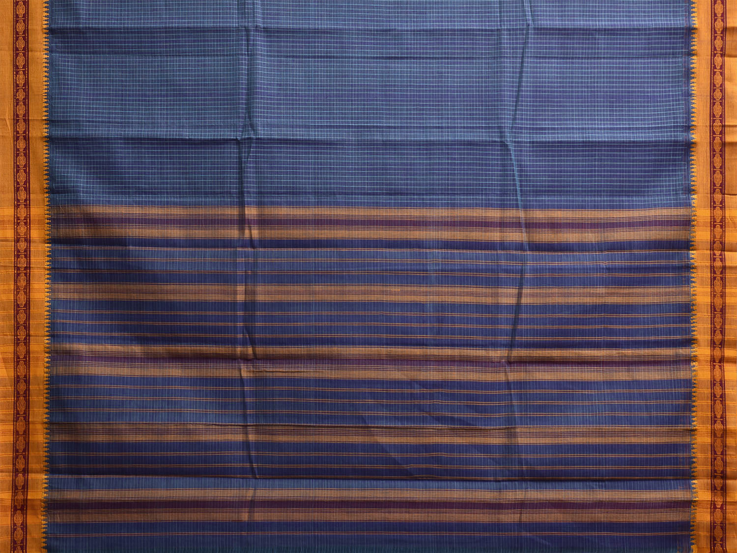 Blue and Yellow Narayanpet Cotton Handloom Saree with Checks Design No Blouse. This saree has no blouse.