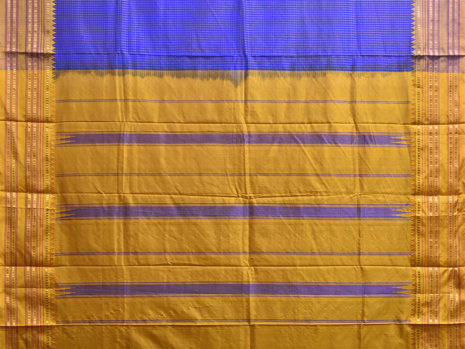 Blue and Yellow Narayanpet Silk Saree with Check Design. Saree length is 6.2mts.