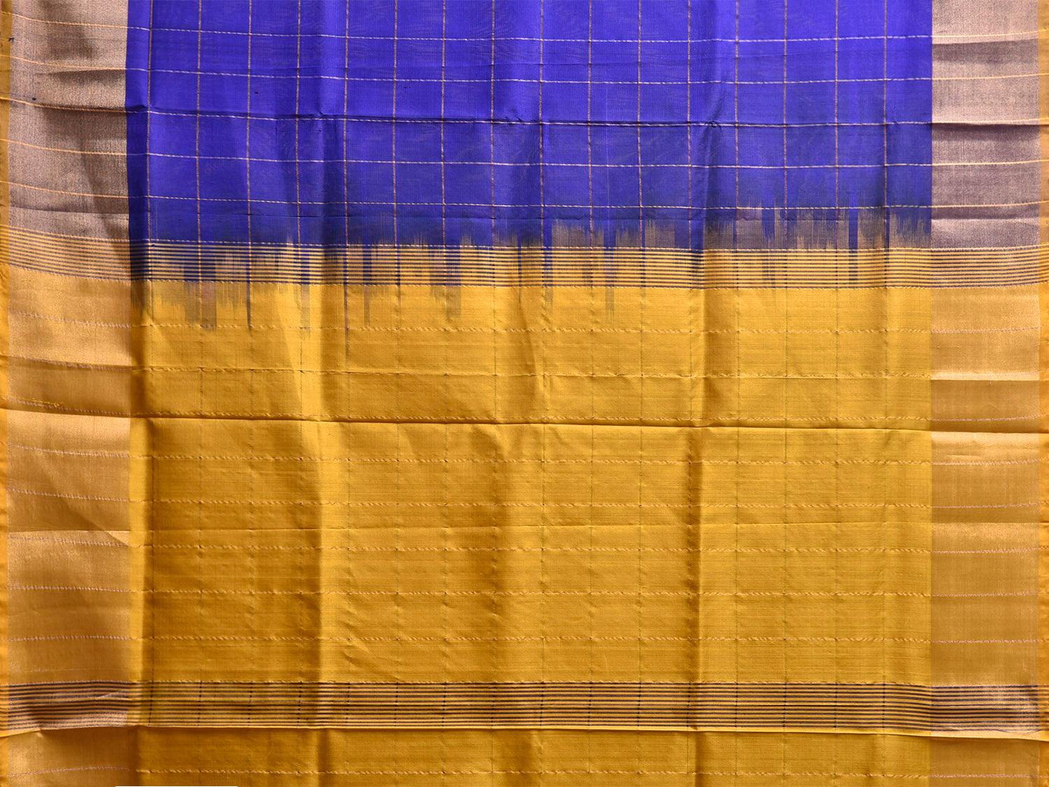 Blue and Yellow Uppada Silk Handloom Saree with Big Checks Design u2442