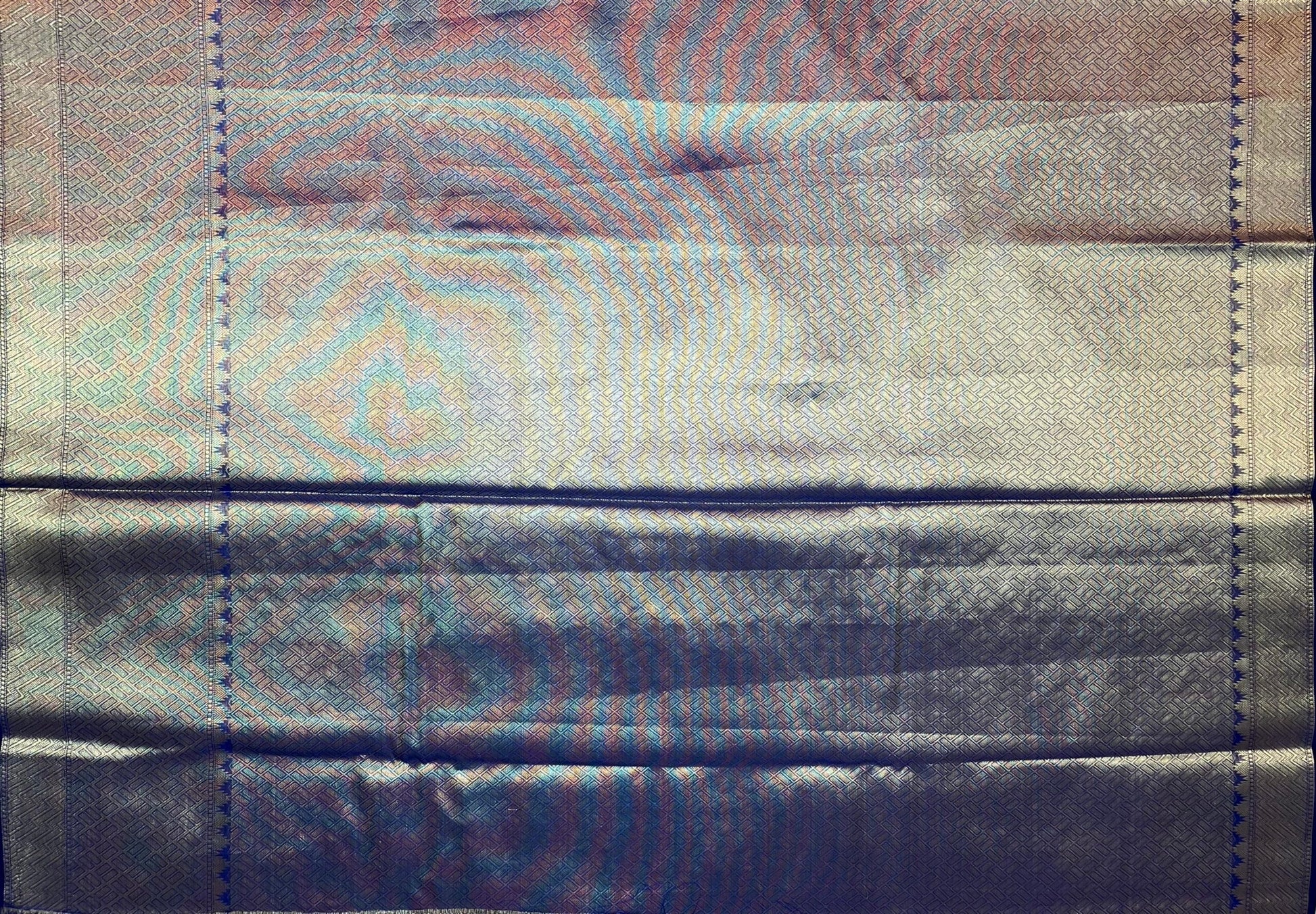 Blue Banaras Fancy with Zari Border Body Butta and Pallu Design