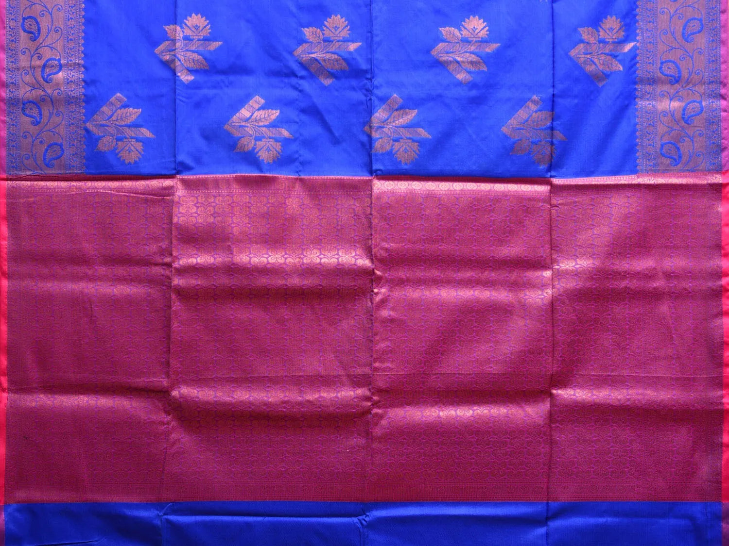 Blue Banaras Katan Silk with Border and Body Butta Design