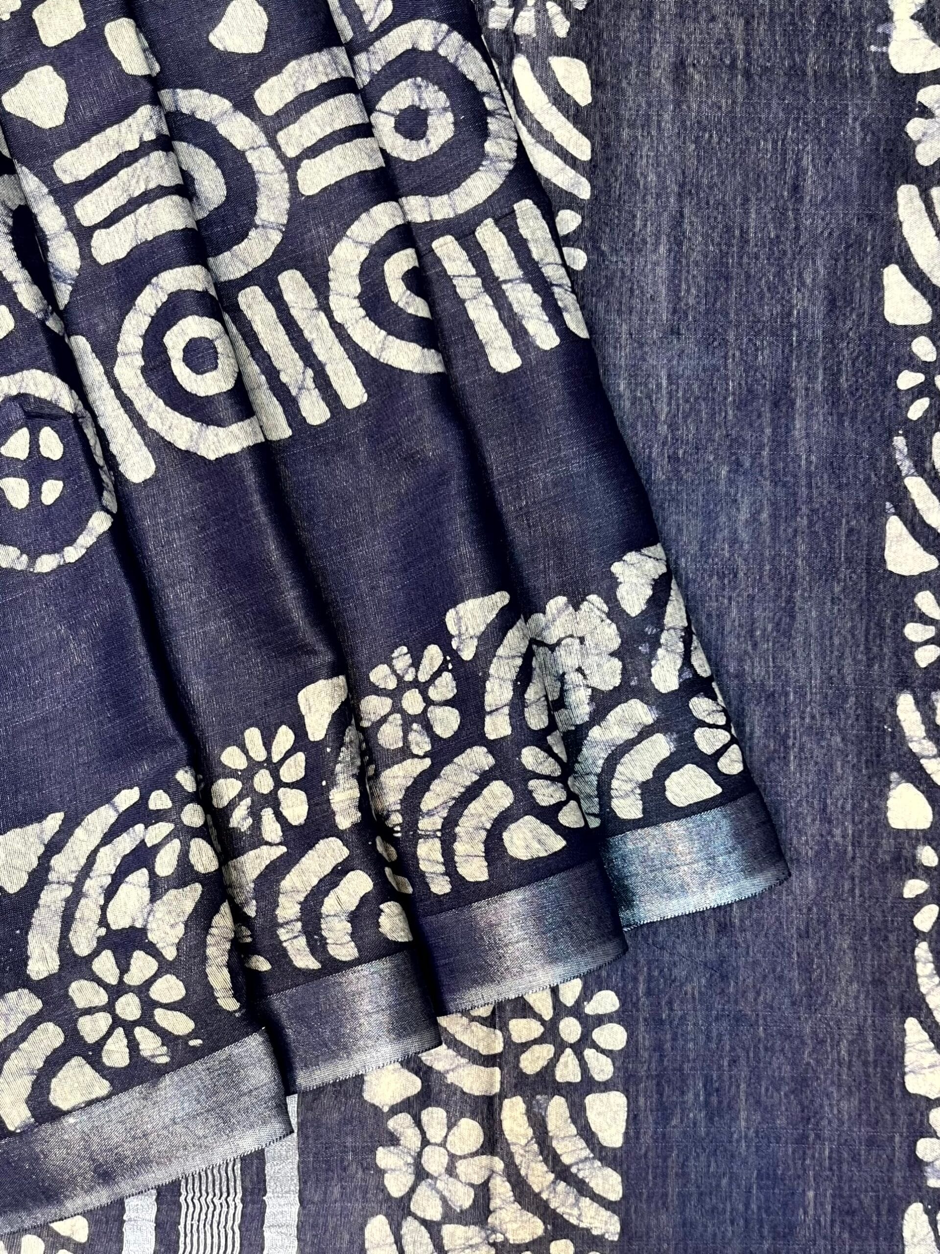 Blue Batik Printed Zari Border with Body and Pallu Design