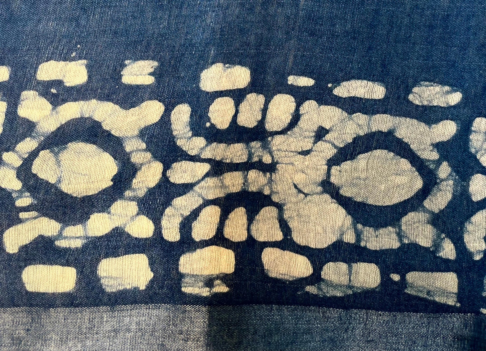 Blue Batik Printed Zari Border with Body and Pallu Design