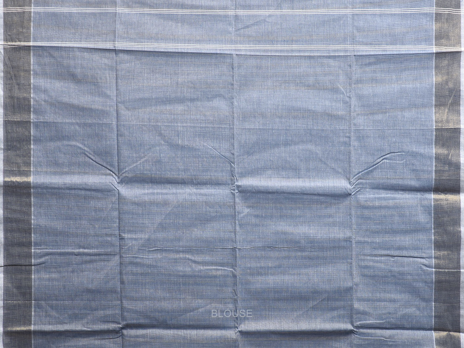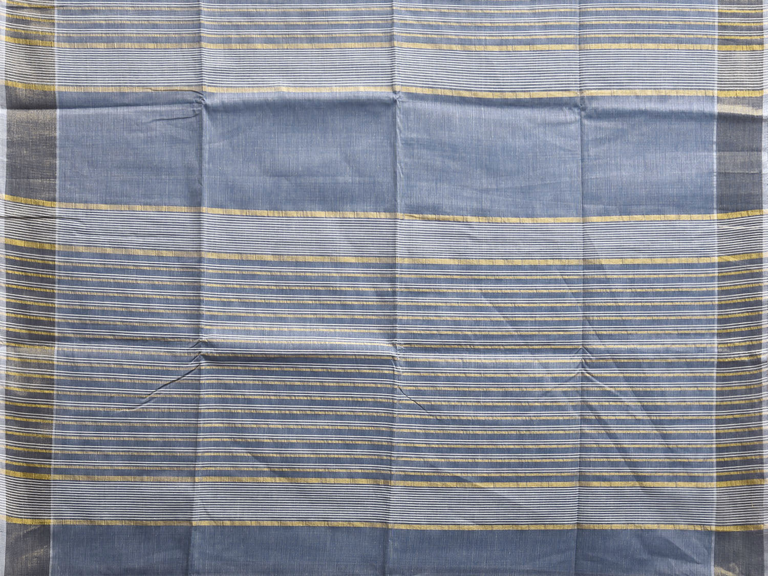 Blue Grey Venkatagiri Cotton Saree with Strips Body and Pallu Design v0150