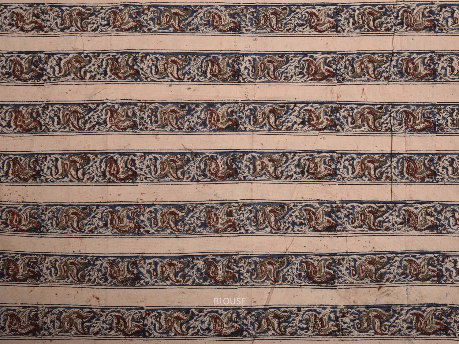 Blue Kanchipuram Cotton Plain Saree with Floral Border Design and Kalamkari Blouse k1000
