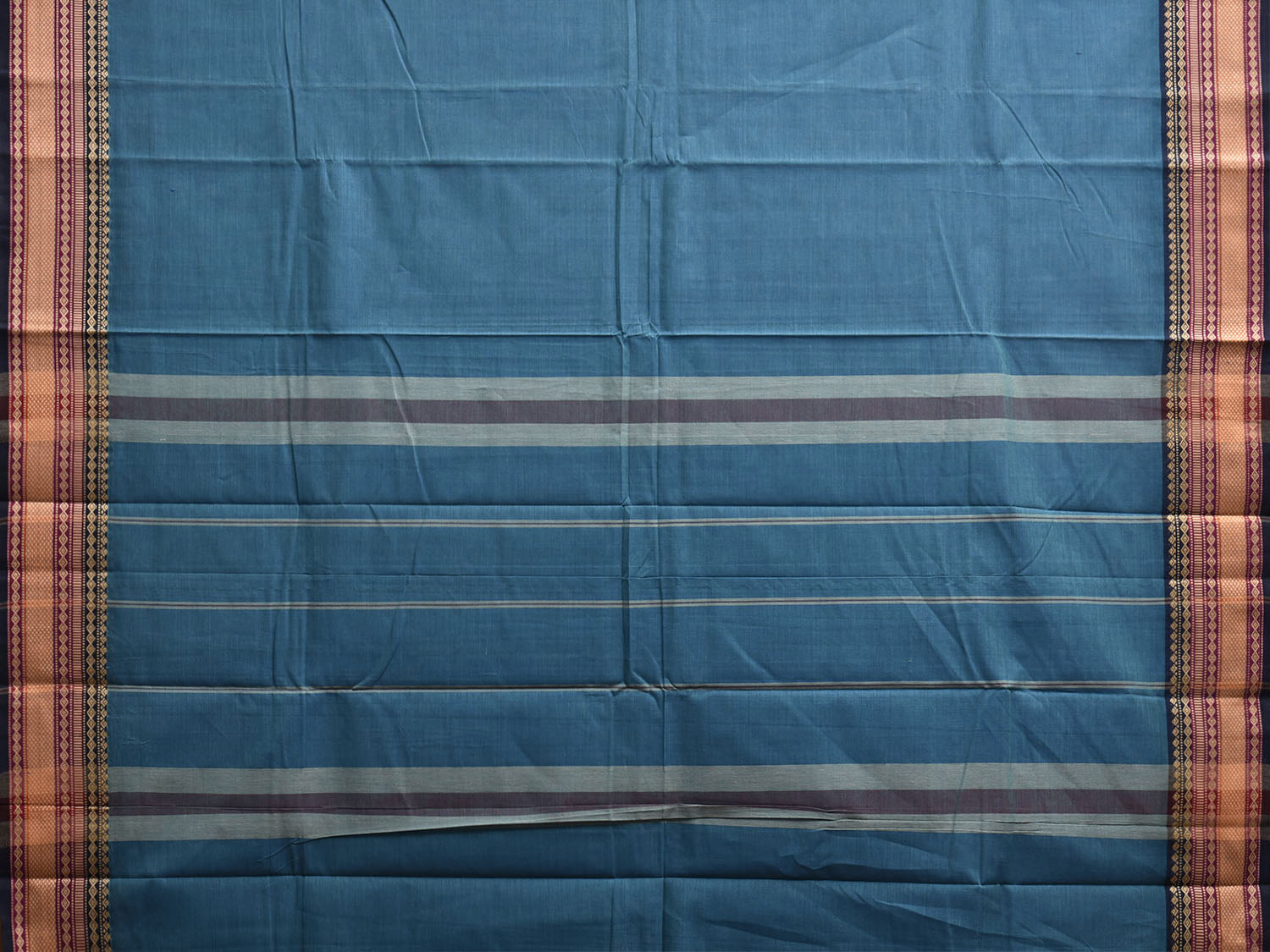 Blue Kanchipuram Cotton Plain Saree with Strips Pallu and Border Design. Traditional Simple South Indian Attire Saree for any Casual Occasions. As it’s a cotton saree we advice gentle handwash separately for fabric care.