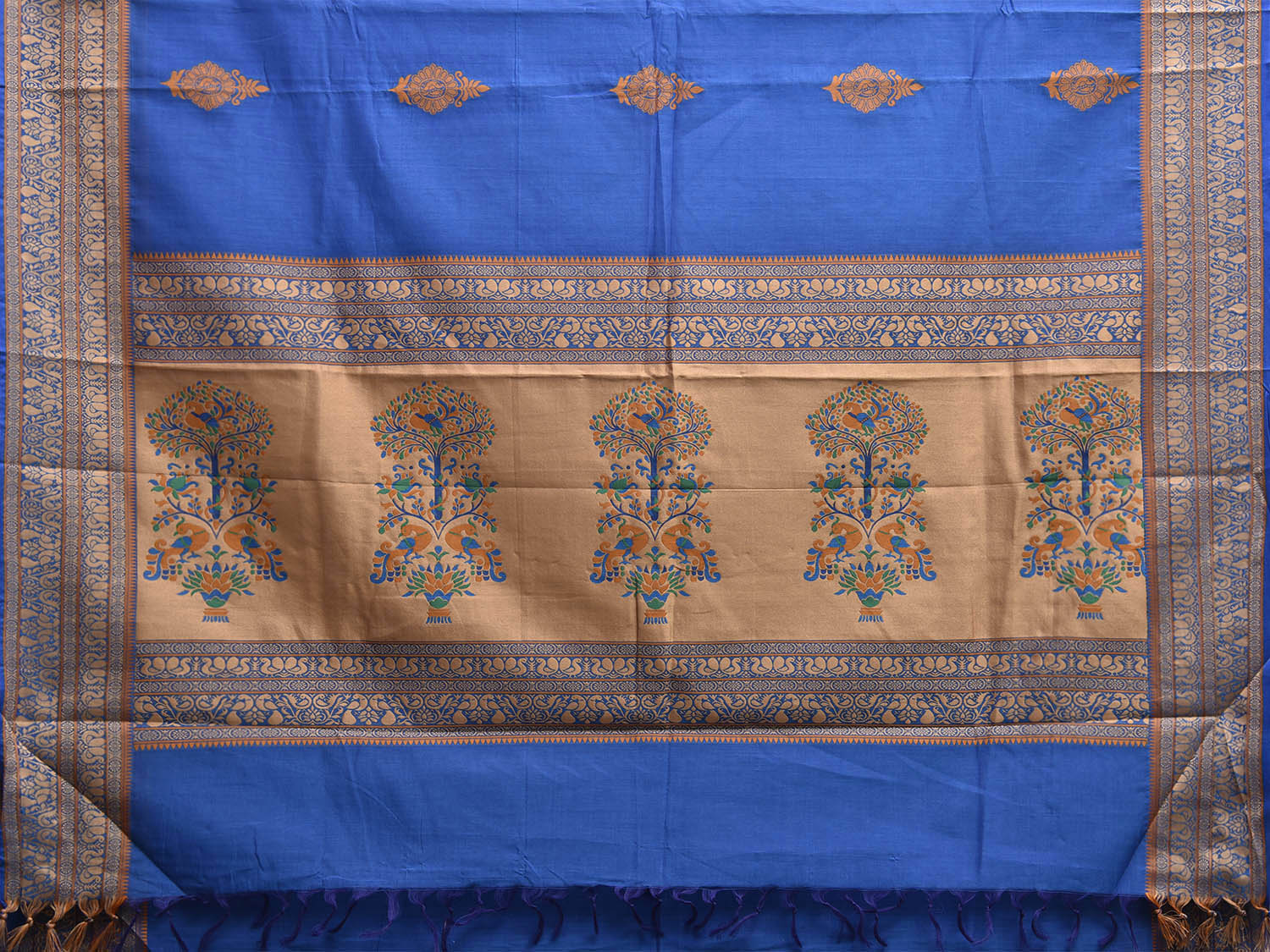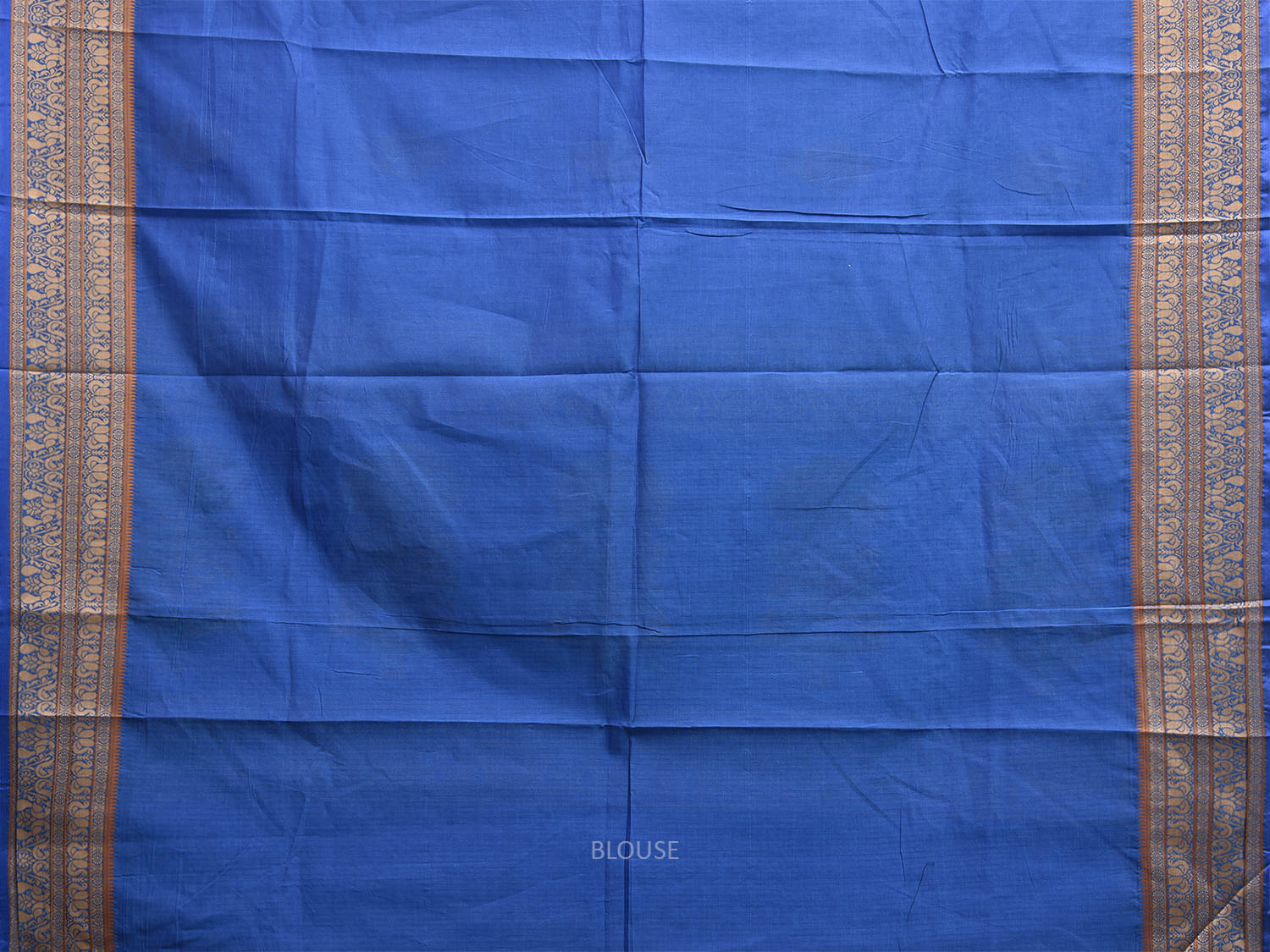 Blue Kanchipuram Cotton Saree with Buta and Peacocks Pallu Design k0946
