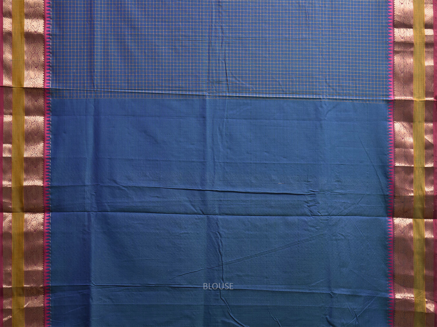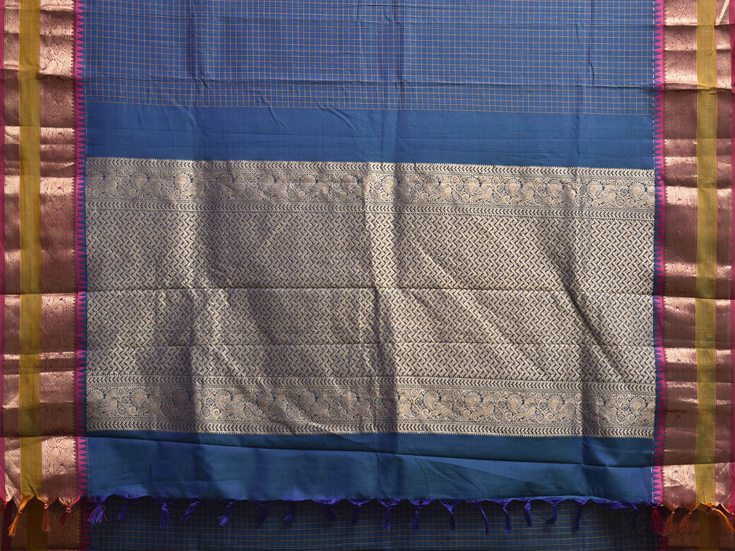 Blue Kanchipuram Cotton Saree with Checks and Pallu Design k0981