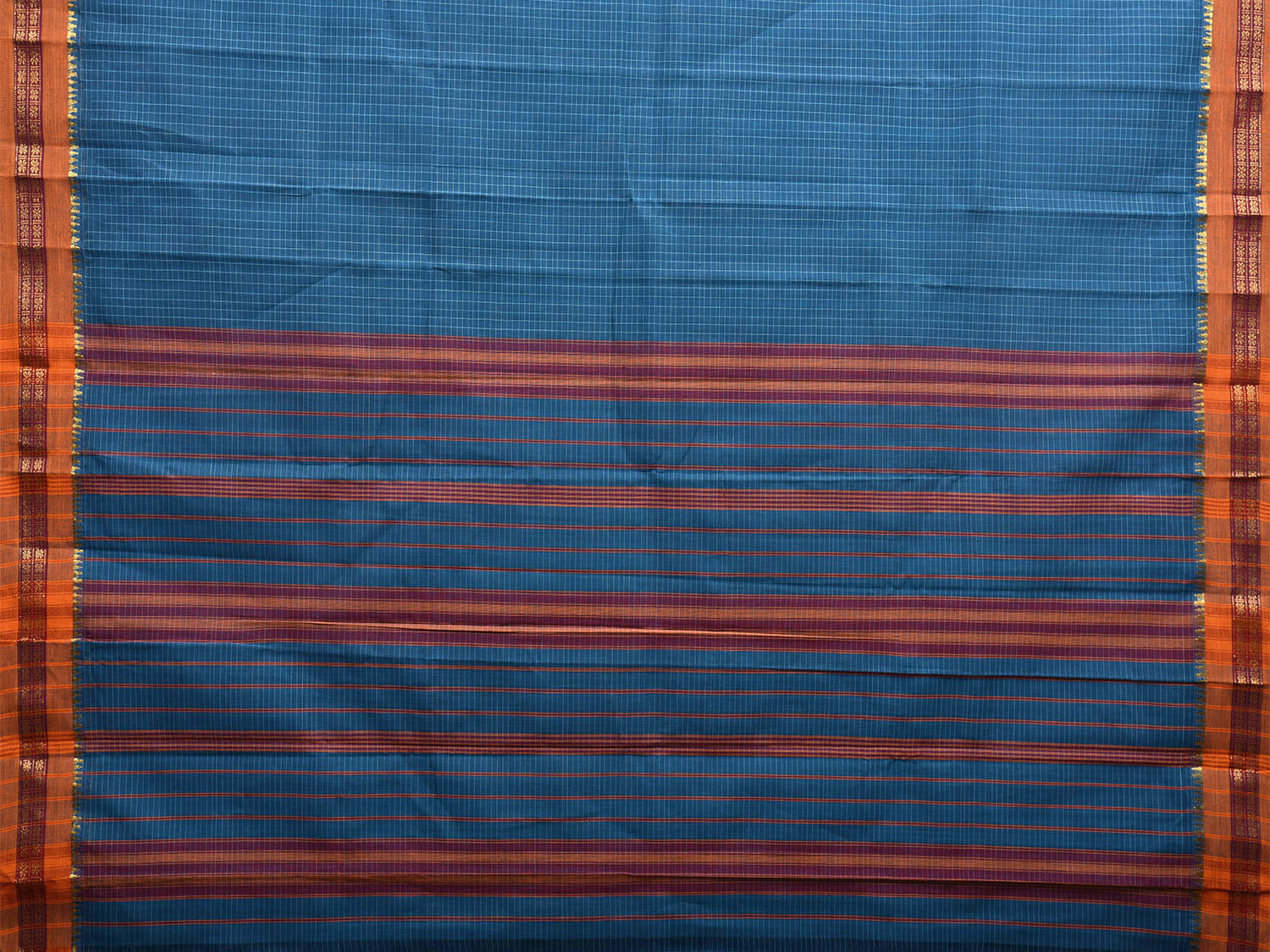 Blue Narayanpet Cotton Handloom Saree with Checks Design No Blouse np0975