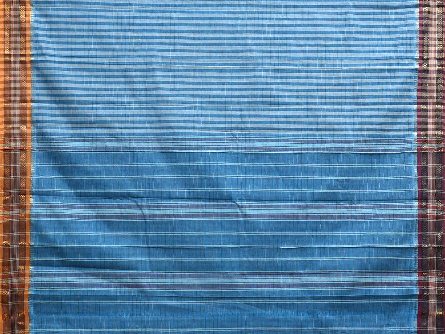 Blue Narayanpet Cotton Handloom Saree with Strips and Ganga-Jamuna Border Design No Blouse. This saree has no blouse.