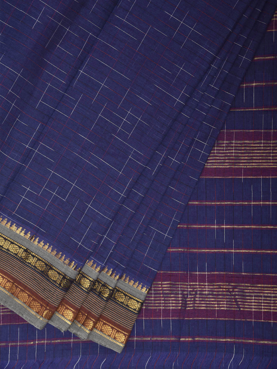 Blue Narayanpet Cotton Handloom Saree with Strips Pallu Design No Blouse np1374