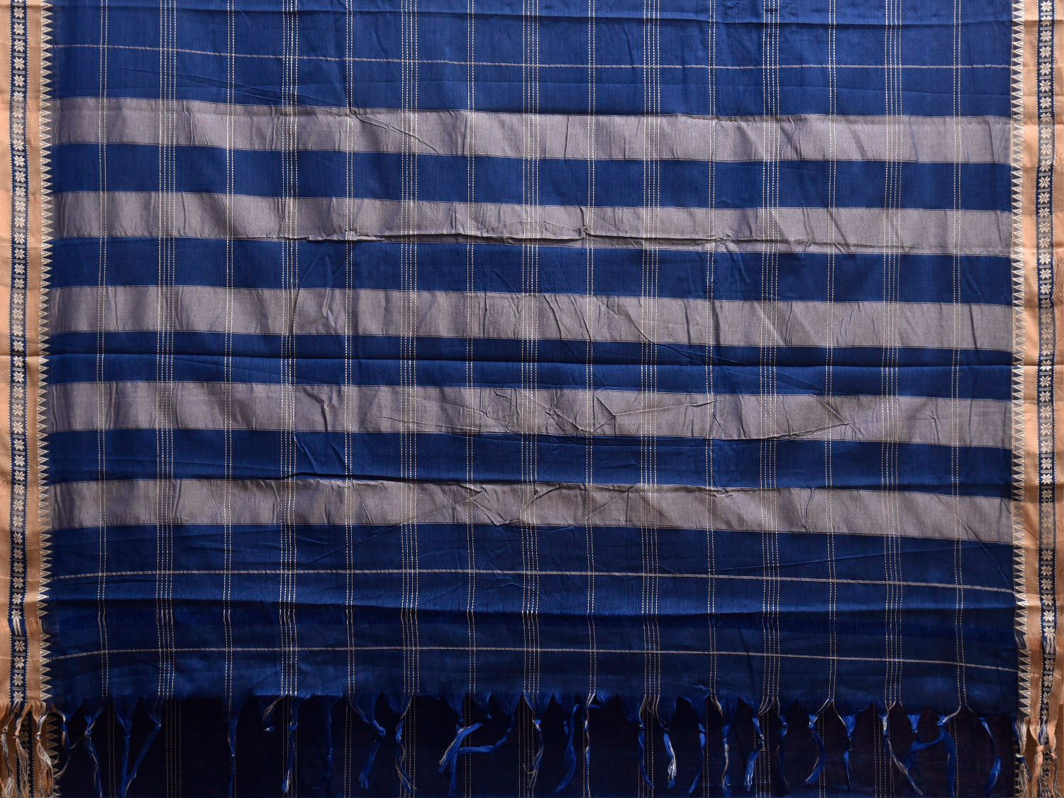 Blue Narayanpet Cotton Saree with Strips Design No Blouse