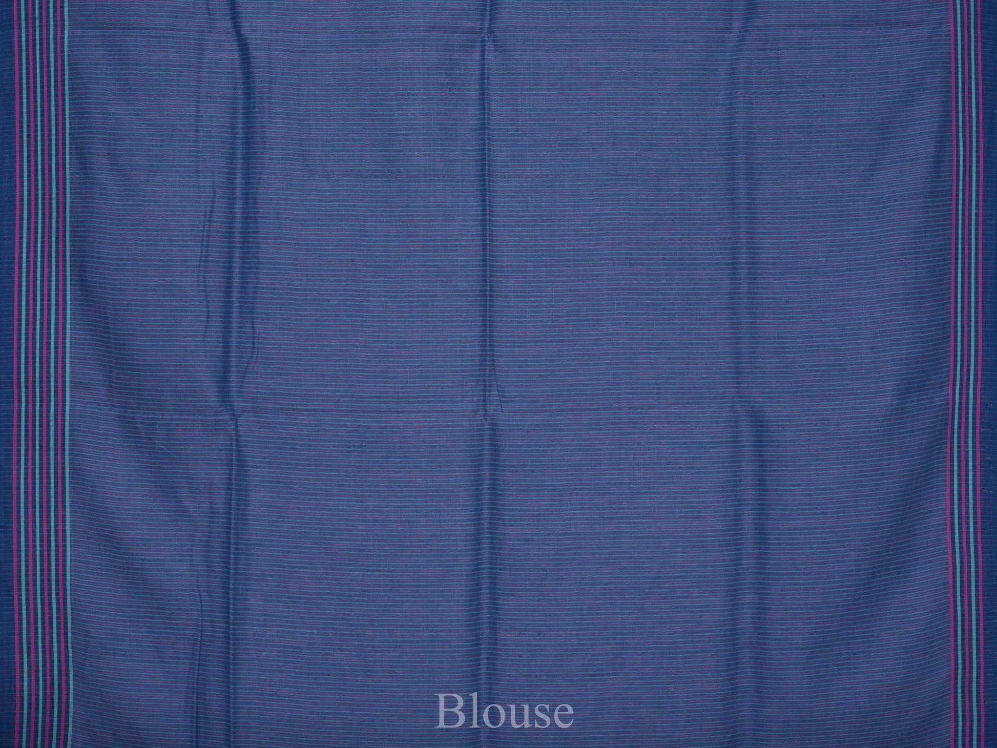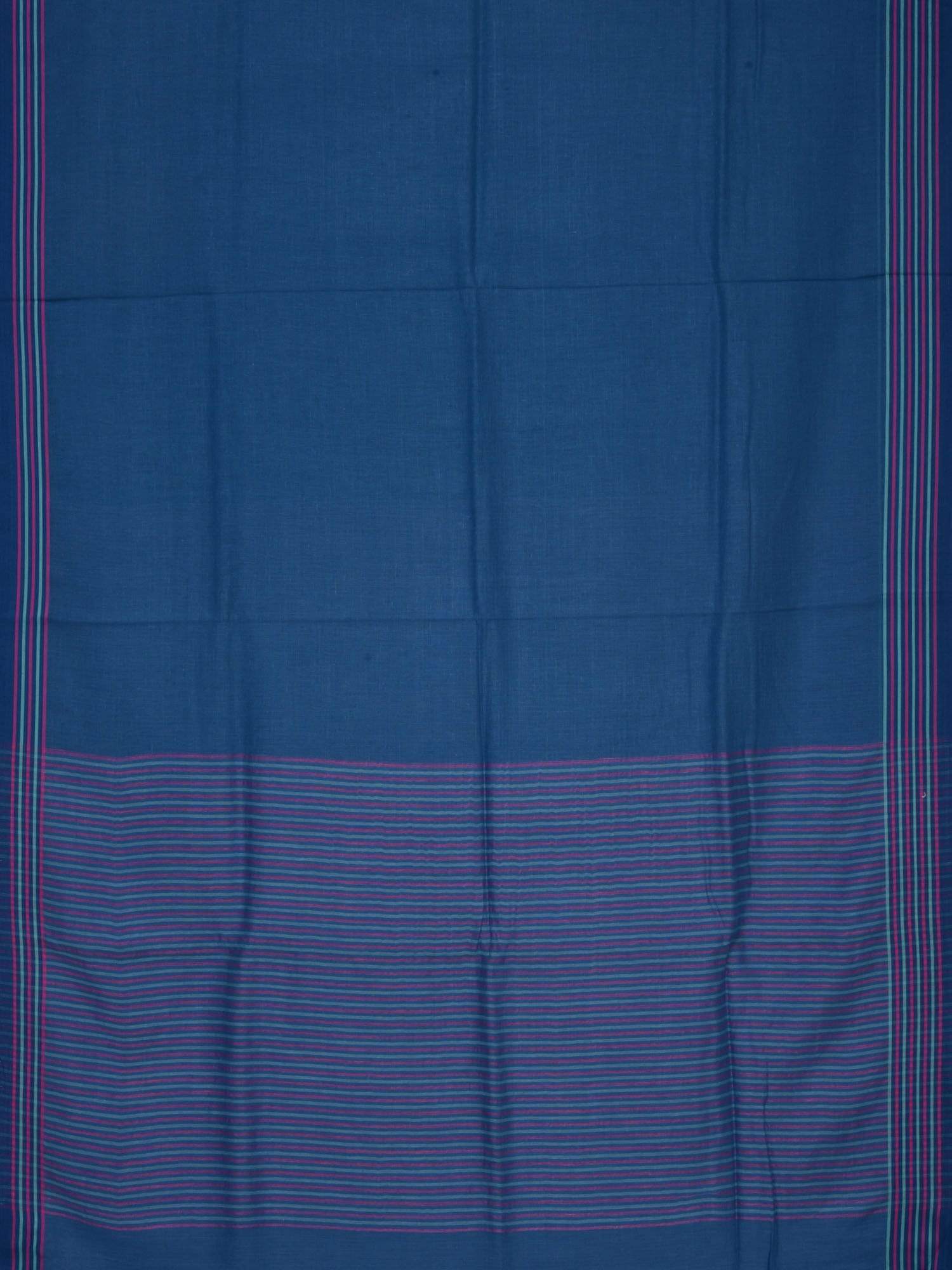Blue Organic Cotton Handloom Saree with Stripes Pallu Design o0127