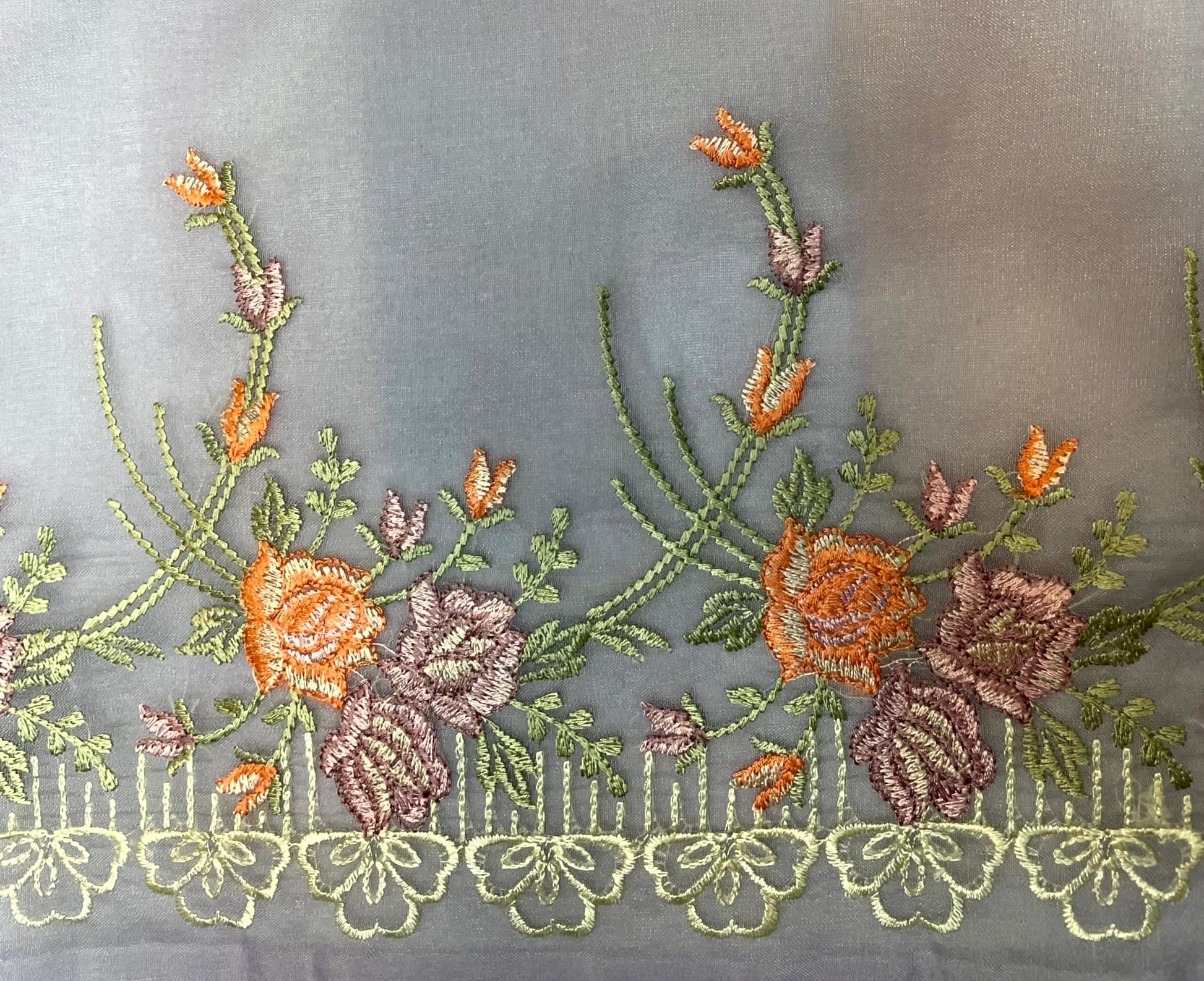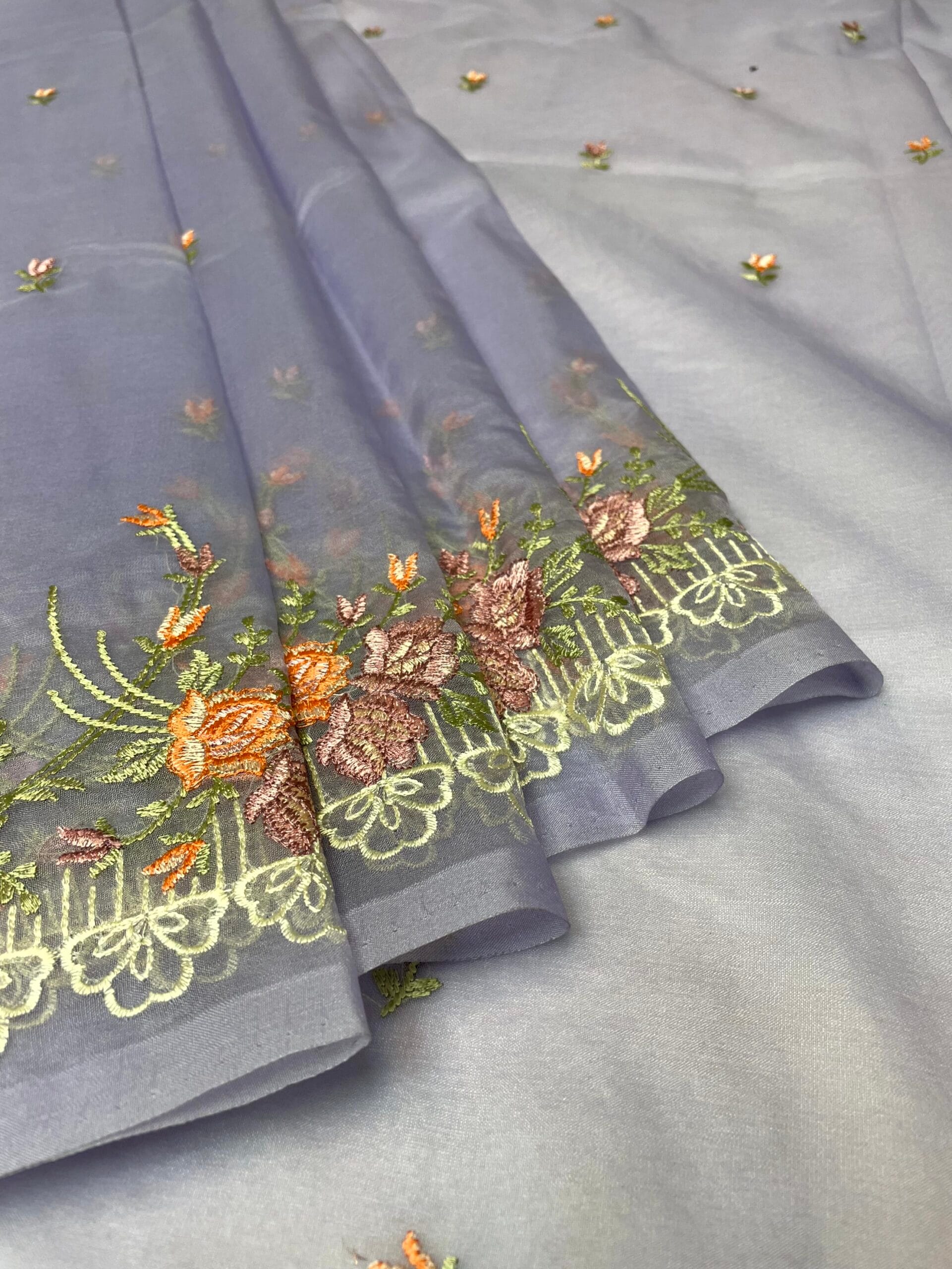 Blue Organza Saree Embroidery with Butta and Border Design b0339ds