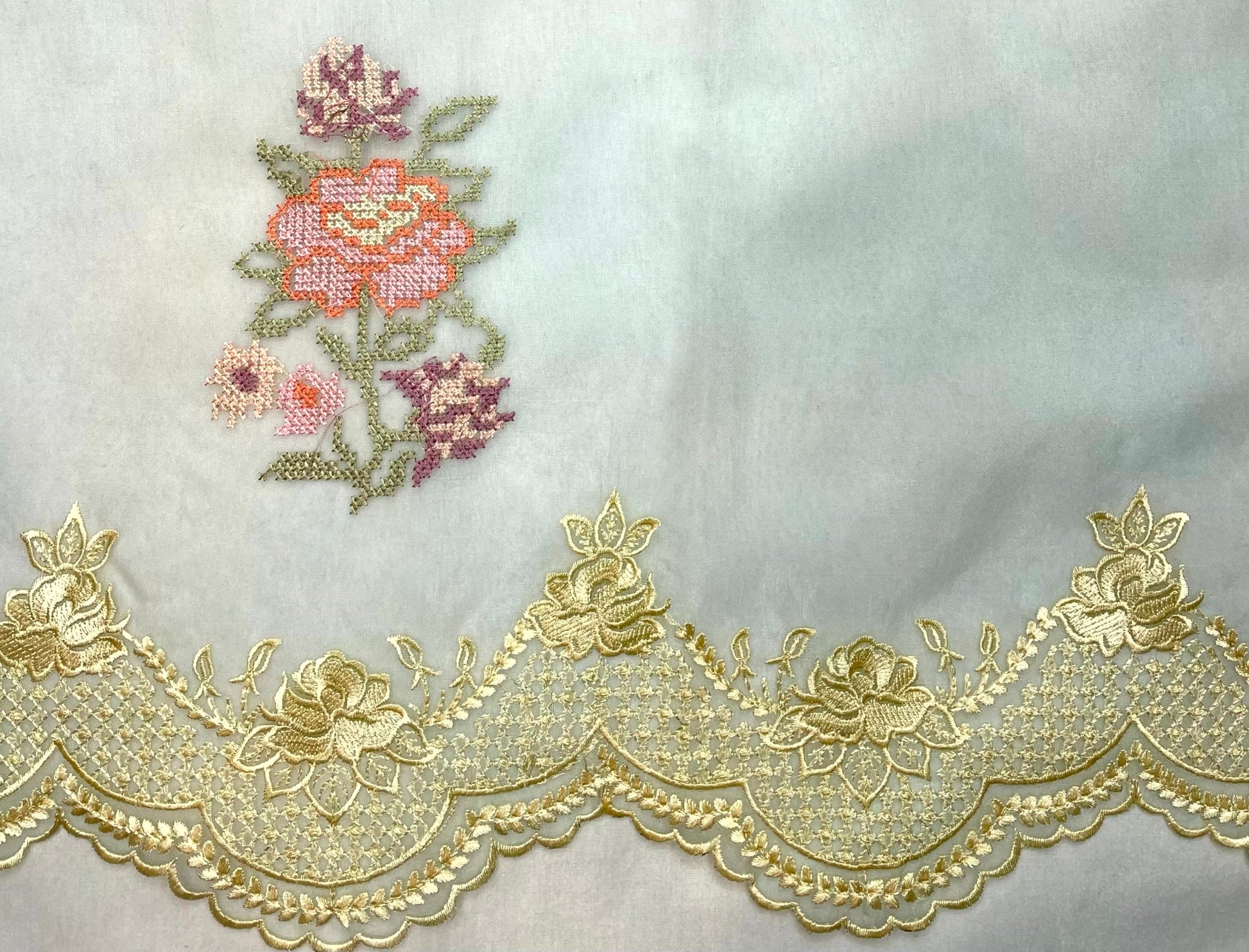 Blue Organza Saree Hand Embroidery with Butta and Border Design
