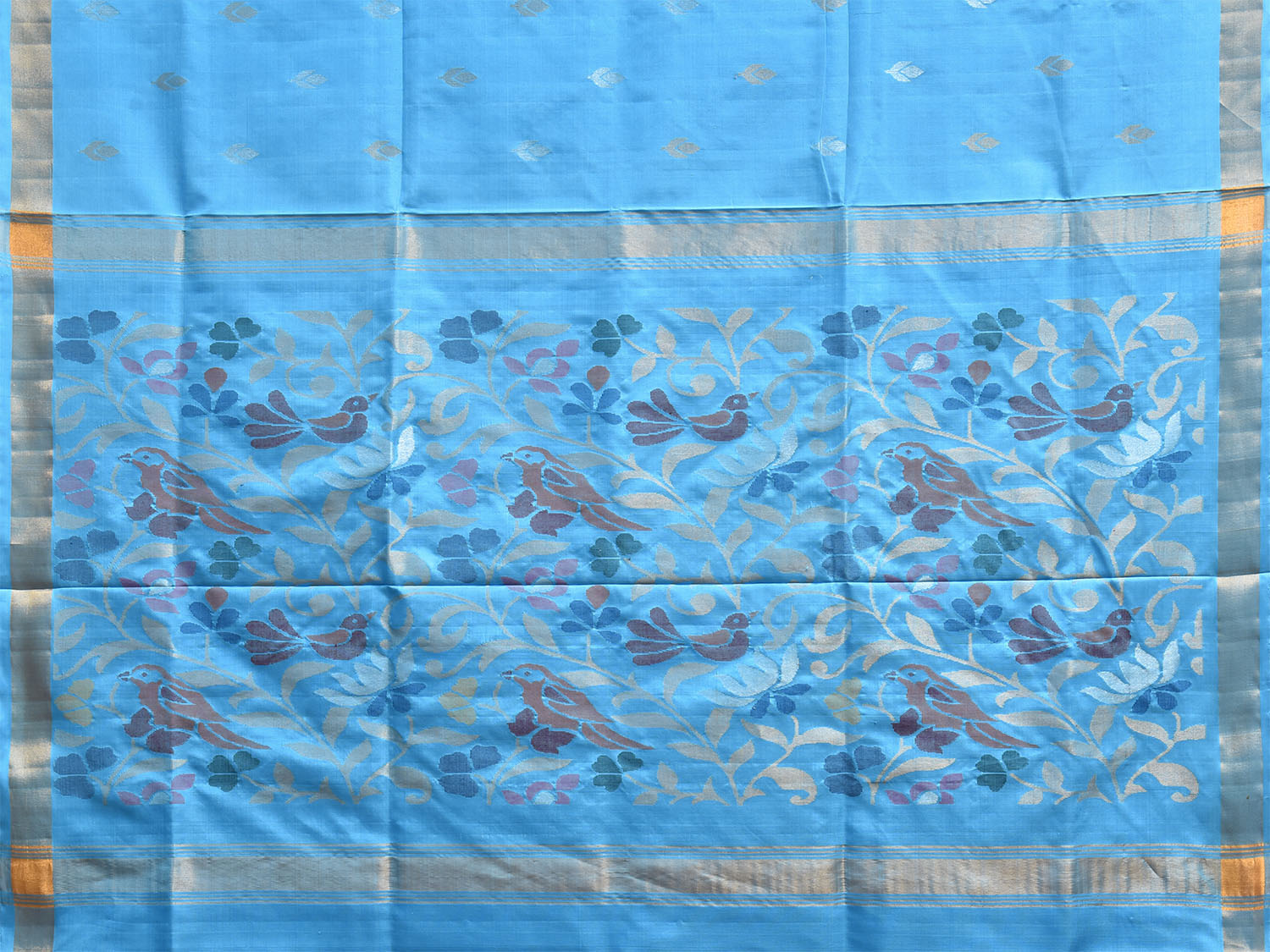 Blue Uppada Pure Silk Handloom Saree with Birds and Floral Pallu Design
