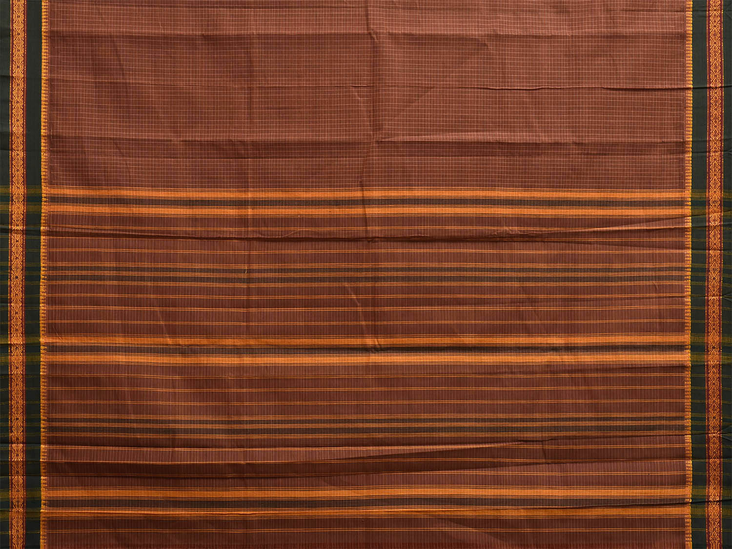 Brown and Green Narayanpet Cotton Handloom Saree with Checks Design No Blouse np1312